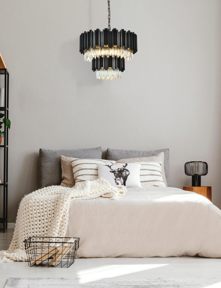 The black finish adds depth and drama, accentuating the geometric lines and creating a bold focal point.