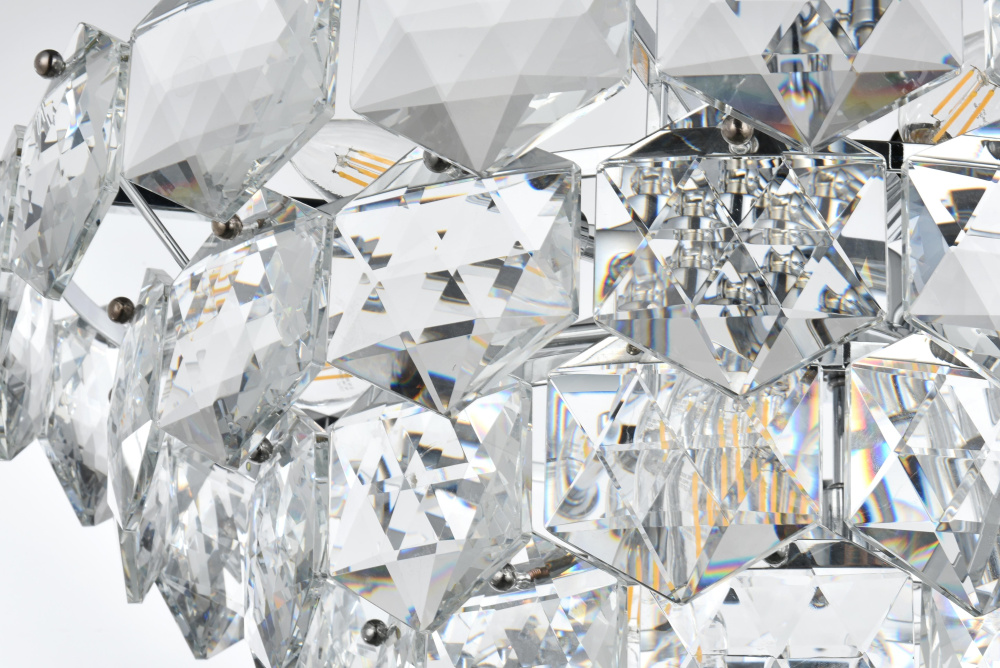 Adorned with six-sided, precision-cut crystals, each tier cascades down to create a radiant play of light and dimension.
