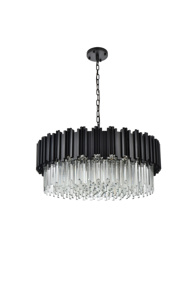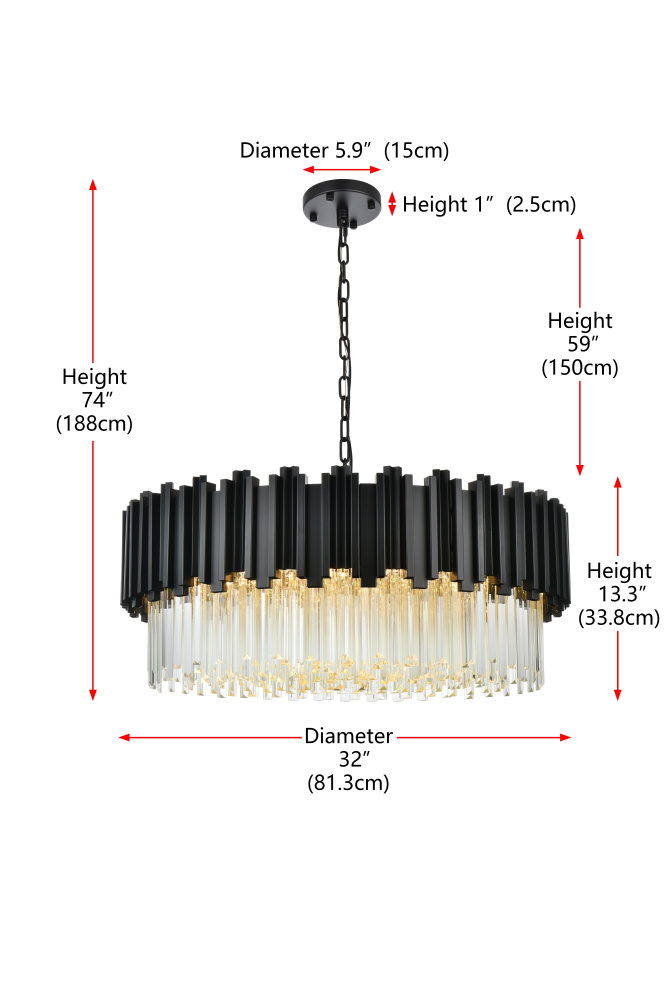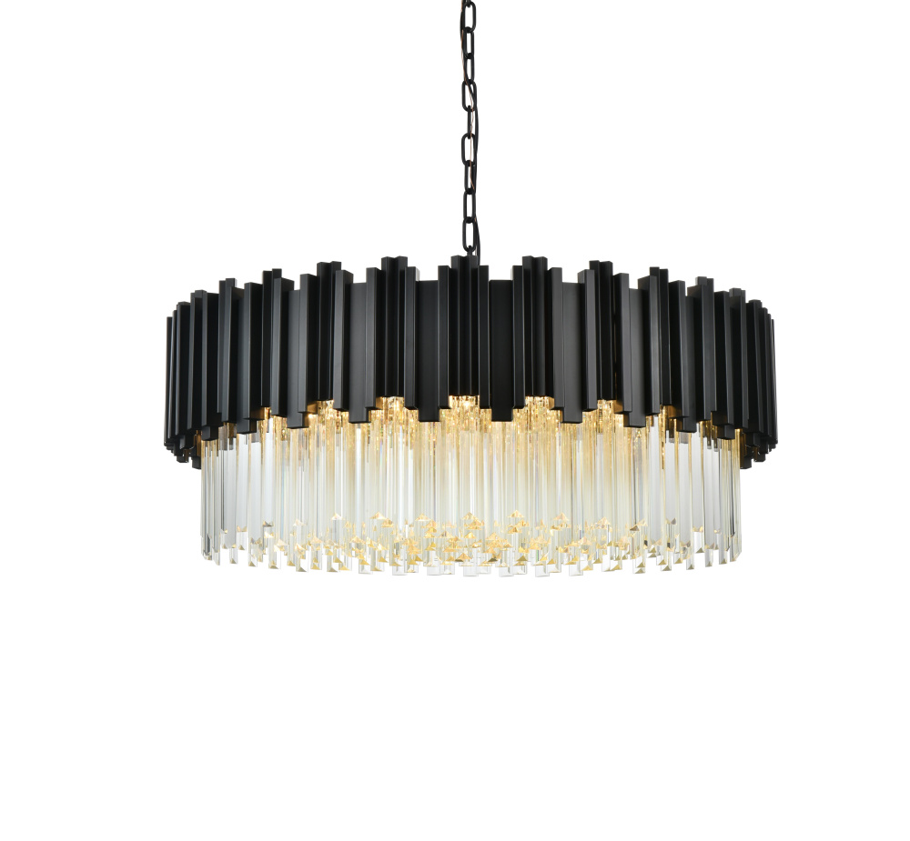 Transform your space with this stunning chandelier, a dynamic fusion of iron and staggered clear glass that exudes contemporary style and architectural artistry. The layered glass refracts light beautifully, creating a radiant display of glowing brilliance that fills the room with warmth and sophistication. The staggered arrangement of the metal and glass adds depth and dimension, making this chandelier an eye-catching centerpiece. Fully dimmable, it allows you to adjust the ambiance to suit any mood, from bright and vibrant to soft and inviting. Available in satin gold for a warm, luxurious vibe, chrome for sleek modernity, and black for bold, dramatic contrast, this fixture comes in various sizes to perfectly complement any space. Complete with a matching canopy, it’s an ideal choice for dining rooms, living rooms, or offices. Add a touch of refined geometry to your décor and bask in the brilliance of this radiant desi