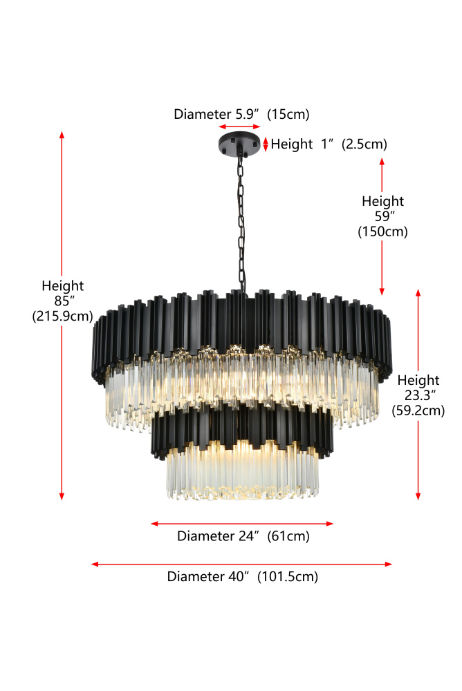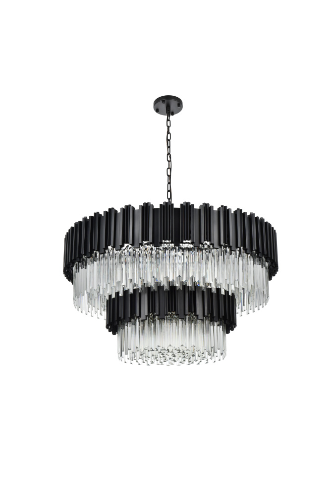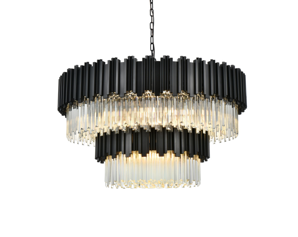 Transform your space with this stunning chandelier, a dynamic fusion of iron and staggered clear glass that exudes contemporary style and architectural artistry. The layered glass refracts light beautifully, creating a radiant display of glowing brilliance that fills the room with warmth and sophistication. The staggered arrangement of the metal and glass adds depth and dimension, making this chandelier an eye-catching centerpiece. Fully dimmable, it allows you to adjust the ambiance to suit any mood, from bright and vibrant to soft and inviting. Available in satin gold for a warm, luxurious vibe, chrome for sleek modernity, and black for bold, dramatic contrast, this fixture comes in various sizes to perfectly complement any space. Complete with a matching canopy, it’s an ideal choice for dining rooms, living rooms, or offices. Add a touch of refined geometry to your décor and bask in the brilliance of this radiant desi