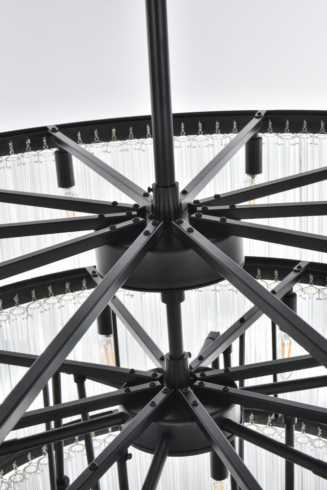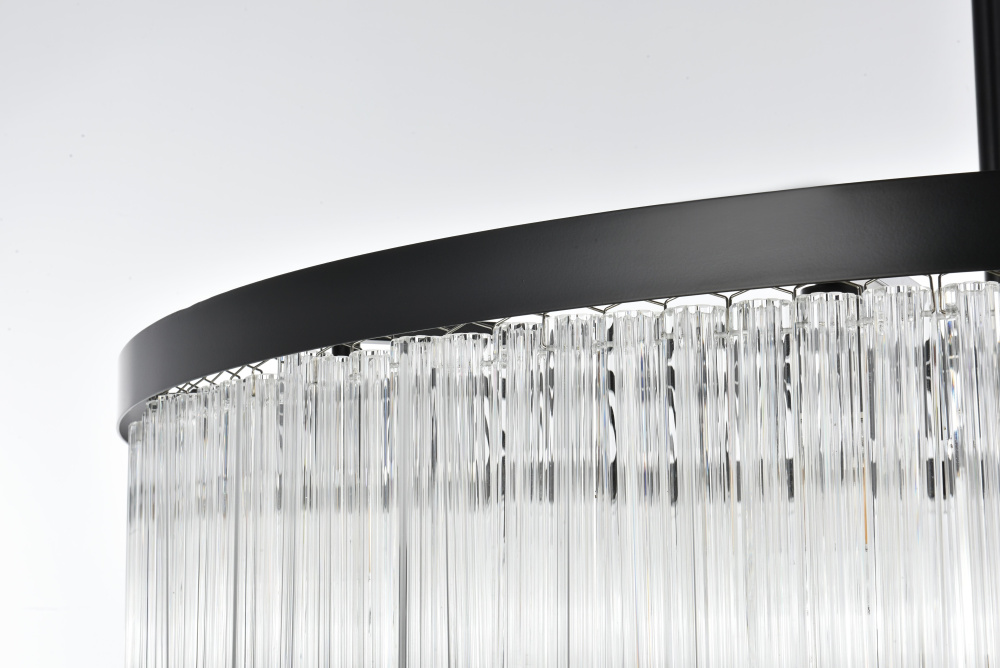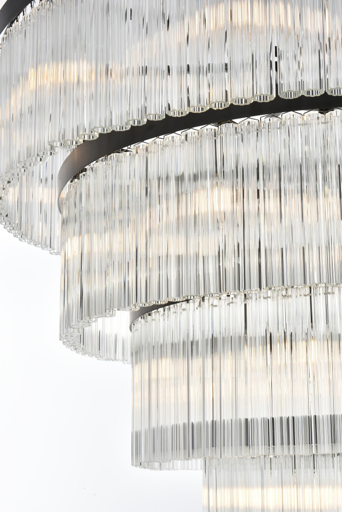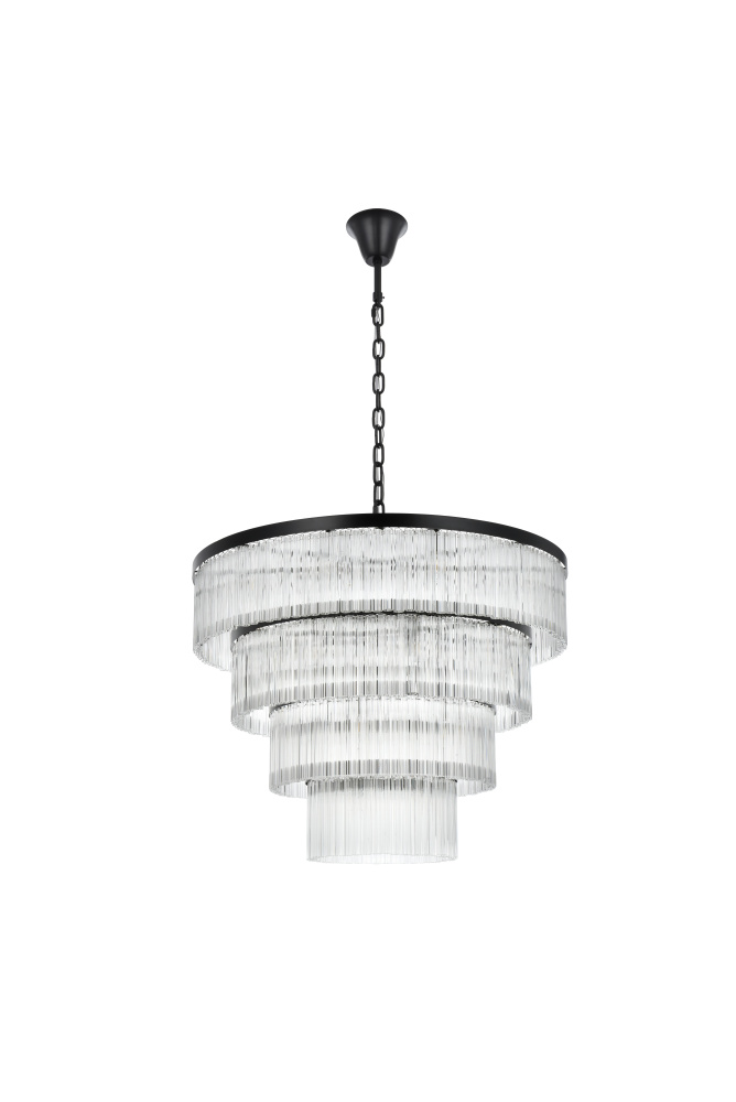 Turn your space into a glowing masterpiece with this striking pendant light, crafted from durable iron and shimmering clear ribbed glass. The cascading layers create a stunning interplay of light and shadow, refracting illumination into a radiant display that transforms your space into an illuminated work of art. Available in chrome for a sleek, contemporary aesthetic, black for bold contrast, and satin gold for an inviting warmth, this pendant light is as versatile as it is beautiful. Whether you choose a single tier for minimalist charm, two tiers for balanced depth, three tiers for bold presence, or four tiers for show-stopping grandeur, there’s an option for every setting. Featuring both round and rectangular frame designs, this fixture adapts to any space with ease. Complete with a matching canopy and chain, and fully dimmable for customized lighting, this pendant pairs perfectly with the coordinating single-tier flush mount and wall sconce collection, ensuring a cohesive, radiant design throughout youhome or office. Please note: light bulbs are sold separately.