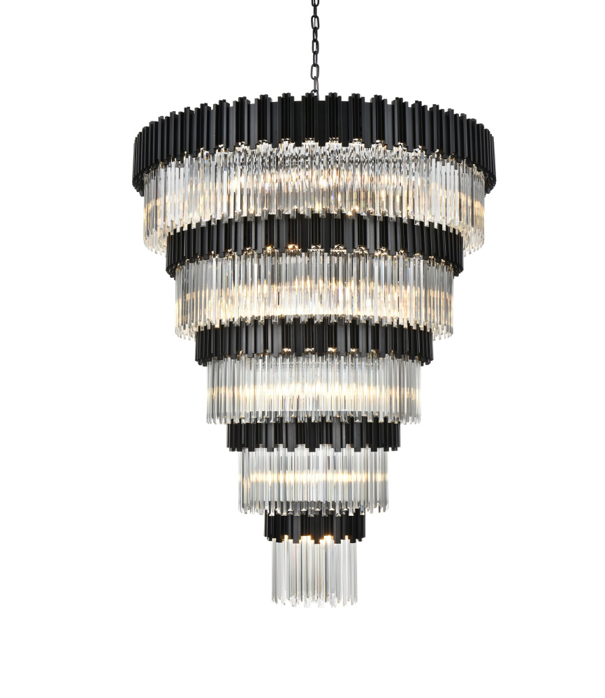 Transform your space with this stunning chandelier, a dynamic fusion of iron and staggered clear glass that exudes contemporary style and architectural artistry. The layered glass refracts light beautifully, creating a radiant display of glowing brilliance that fills the room with warmth and sophistication. The staggered arrangement of the metal and glass adds depth and dimension, making this chandelier an eye-catching centerpiece. Fully dimmable, it allows you to adjust the ambiance to suit any mood, from bright and vibrant to soft and inviting. Available in satin gold for a warm, luxurious vibe, chrome for sleek modernity, and black for bold, dramatic contrast, this fixture comes in various sizes to perfectly complement any space. Complete with a matching canopy, it’s an ideal choice for dining rooms, living rooms, or offices. Add a touch of refined geometry to your décor and bask in the brilliance of this radiant desi