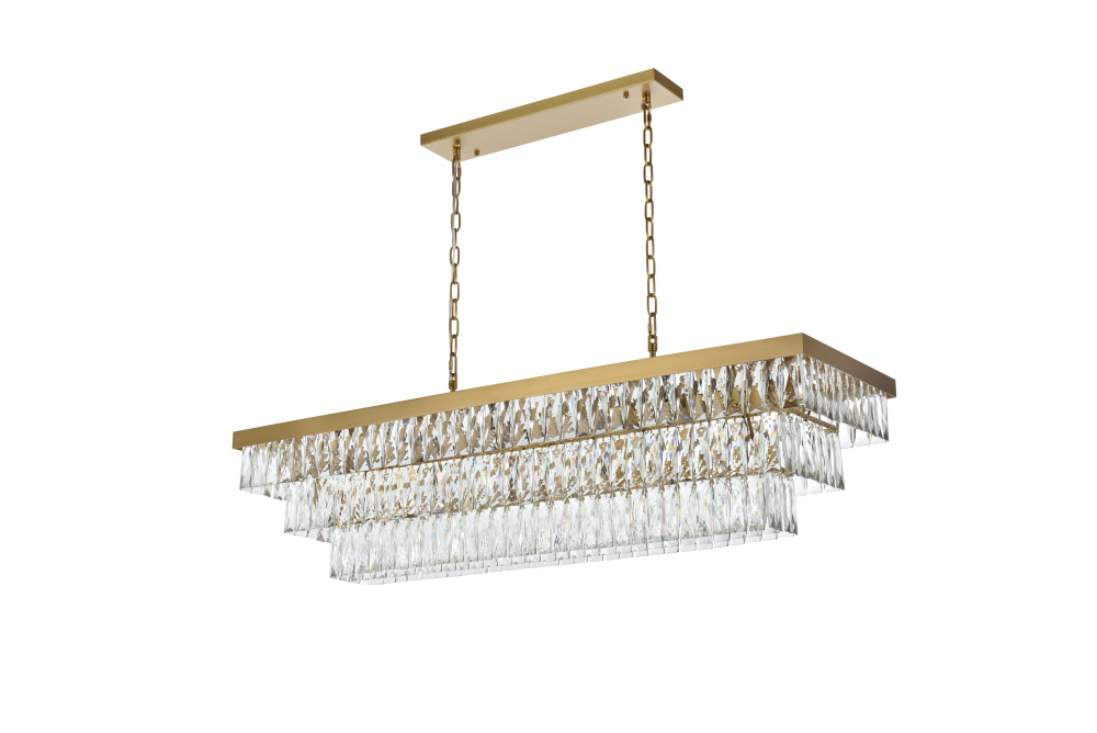 Transform your space with this spectacular linear pendant that reinvents crystal lighting for contemporary interiors. The bold rectangular frame suspends two perfectly proportioned crystal tiers, creating a mesmerizing interplay of light and structure. Each precisely cut crystal is strategically positioned to maximize light play, producing brilliant refractions that dance across your space. The strong horizontal presence makes this fixture an ideal centerpiece above dining tables, conference rooms, or in grand living spaces. The thoughtful construction marries industrial strength with crystalline delicacy, as the robust metal frame appears to float above while supporting the spectacular crystal arrangement. Whether styled in reflective chrome, sophisticated black, or warm satin gold, this pendant commands attention through its architectural presence. The linear composition offers a fresh interpretation of crystal lighting, where clean lines and geometric precision meet the spectacular light performance of premium crystal. This fixture doesn't merely illuminate – it defines space through its commanding horizontal presence while creating an ever-changing display of light and shado