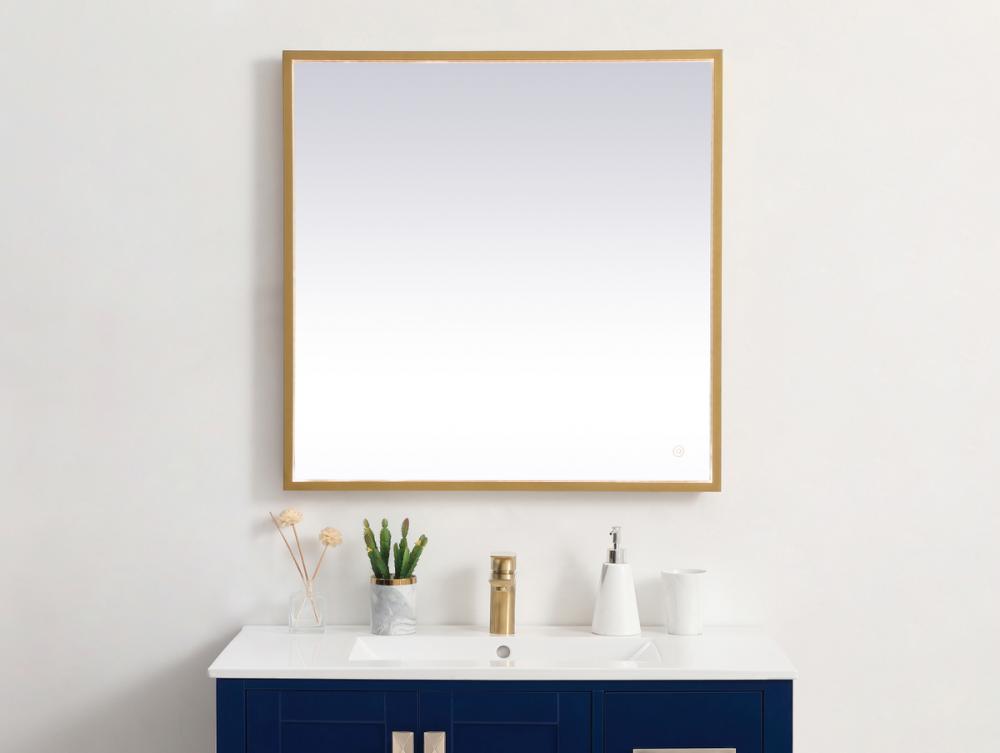 Pier 27x36 inch LED mirror with adjustable color temperature 3000K/4200K/6400K in brass