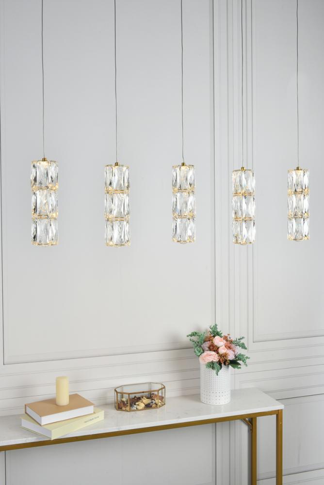 The Polaris collection is the epitome of "cool" in lighting, because each of the fixtures has rectangular, Royal-cut crystals that look like ice cubes, gracefully suspended from a stainless-steel base with a bright gold finish. Designed for rooms with higher ceilings, these fixtures are definitely stylistic attention-getters.