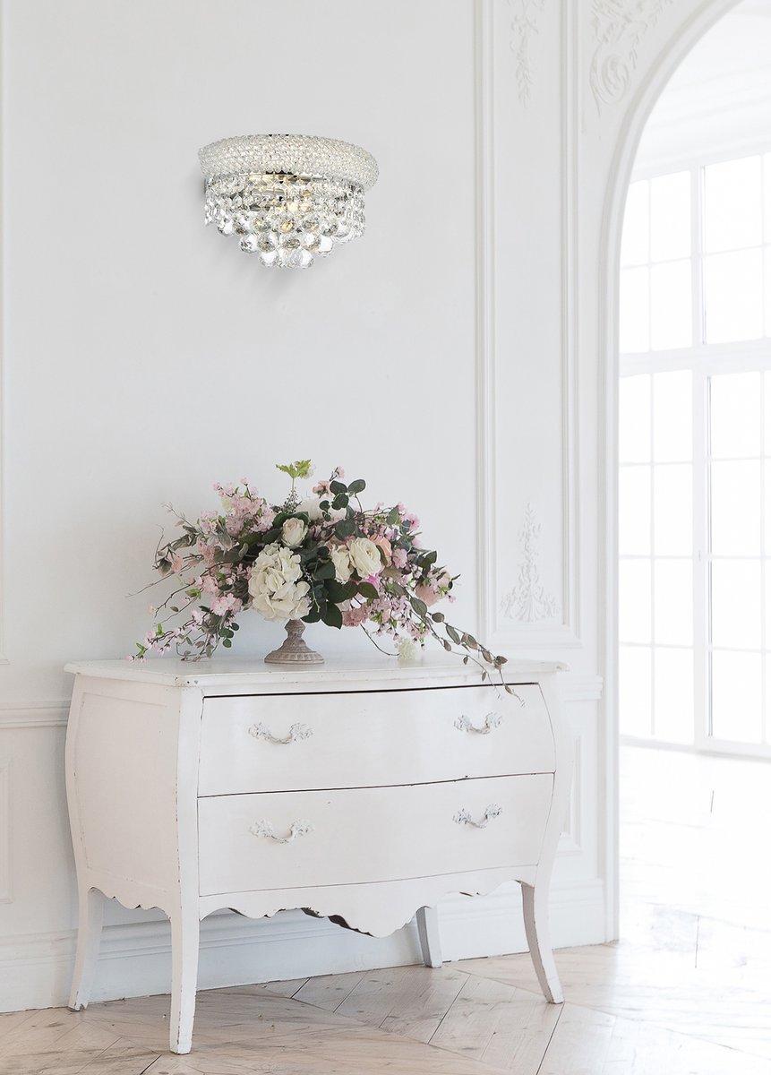 "Primo" means "first" in Italian, and the Primo wall sconces live up to their name as the top choice in classic, dramatic lighting. The gentle bell-shaped design adds graceful elegance to brighten any area of your home. A small ring on top, encrusted with crystals, holds strands of crystal octagons that flow outward to the larger bottom ring, laden with more crystals. Below that, this shimmering fixture culminates in descending layers of crystal octagons, balls, or drops, which come together with a Single ball at the bottom.