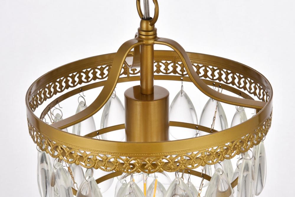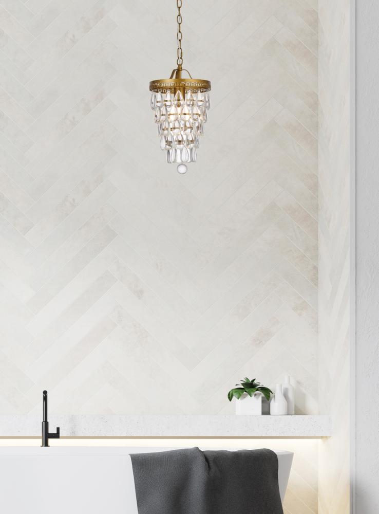 This one light pendant is sure to look great in your space. The circular canopy, hanging chain, and socket are made from metal of your choice of finish. It features a cascading tiers of crystal drops that encases one medium socket. This fixture takes one 40W bulb, (not included) that wash your space in a bright glow. It's compatible with a dimmer switch, so you'll always have the right amount of light no matter the time of day.