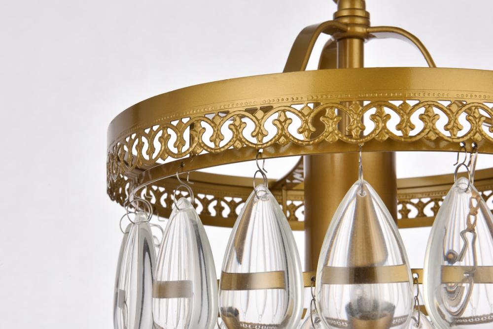 Tiers of royal-cut clear crystals reflect the soft glow of one light