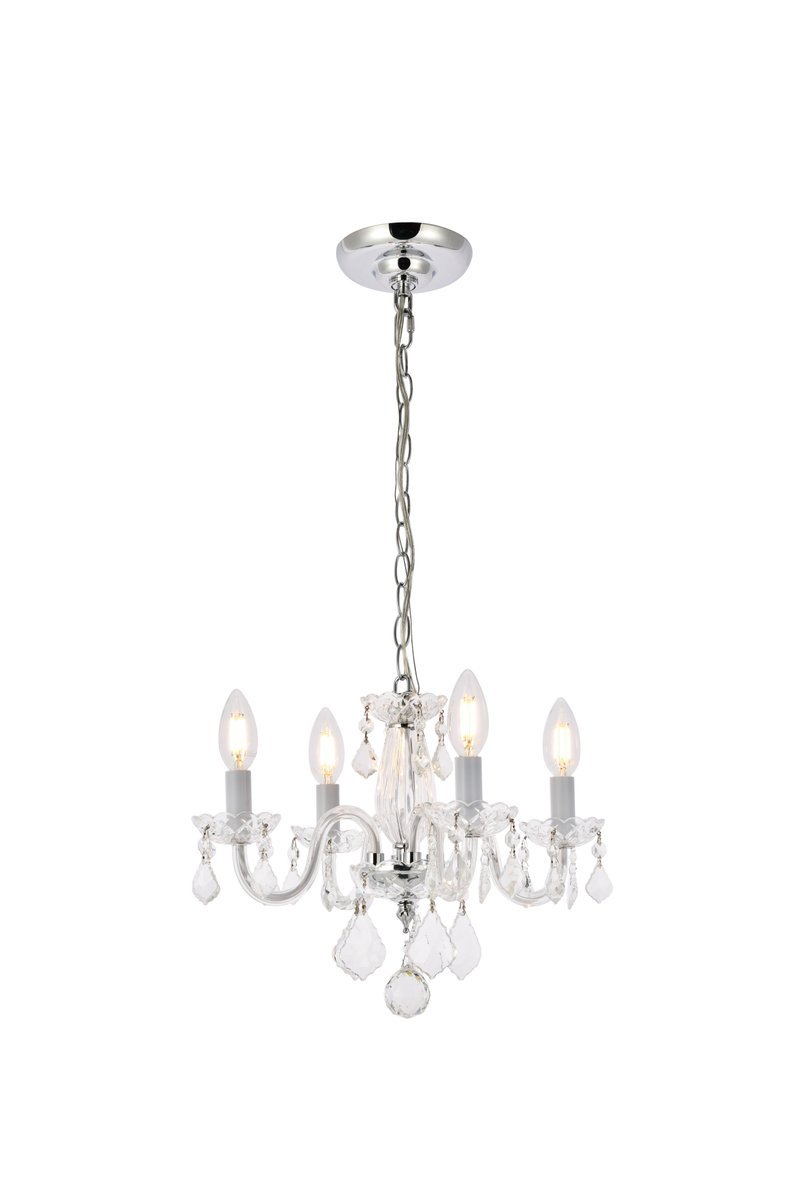 The 7804 Rococo collection was inspired by the lavish elegance of 18th century France, known for its graceful curves and light colors. The steel frame, available in an array of finishes, is highlighted by curved glass arms, a glass vase, and glass holders for the candelabra bulbs. Dangling from the delicately etched glass plates on three levels are royal-cut octagon and pendeloque crystals. It all comes together with a faceted glass sphere at the bottom. Optional shades of acrylic and organza add coziness to the glam. Petite in size yet grand in appearance, Rococo hanging pendants are perfect for enhancing the décor of smaller areas in your home.