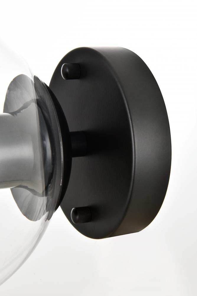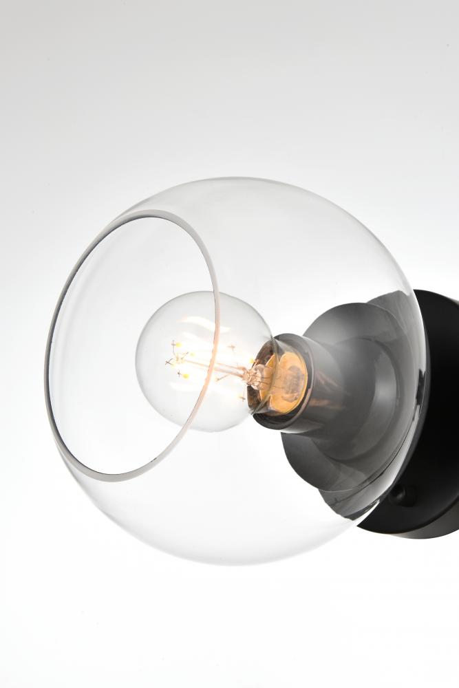 Turn up the brightness in your bathroom with this modern vanity light. This iron fixture features a streamlined silhouette and a smooth finish for a mid-century modern look. The circular backplate connects to one sleek arm design. The arm holds clear glass globe shades that accommodate medium-base bulb up to 40W, which are not included.