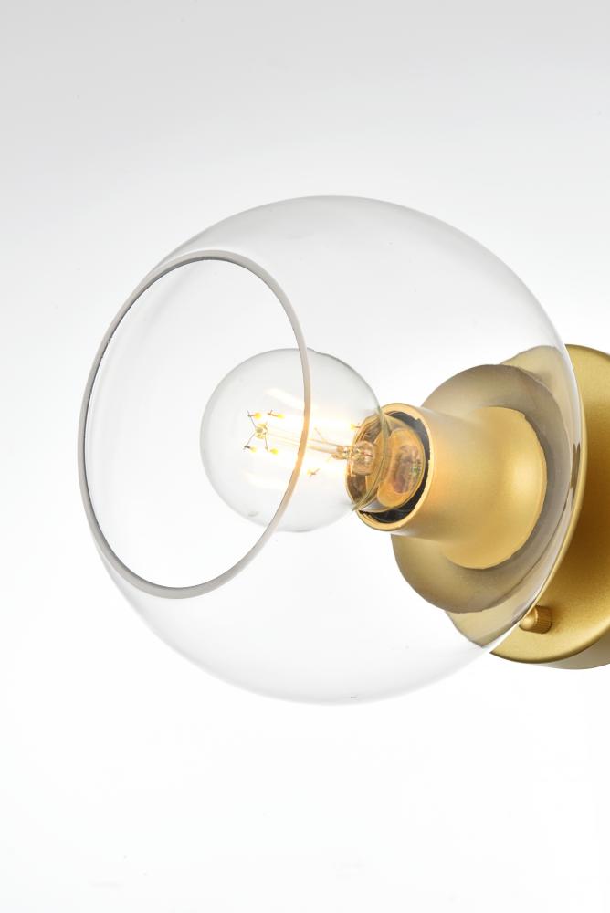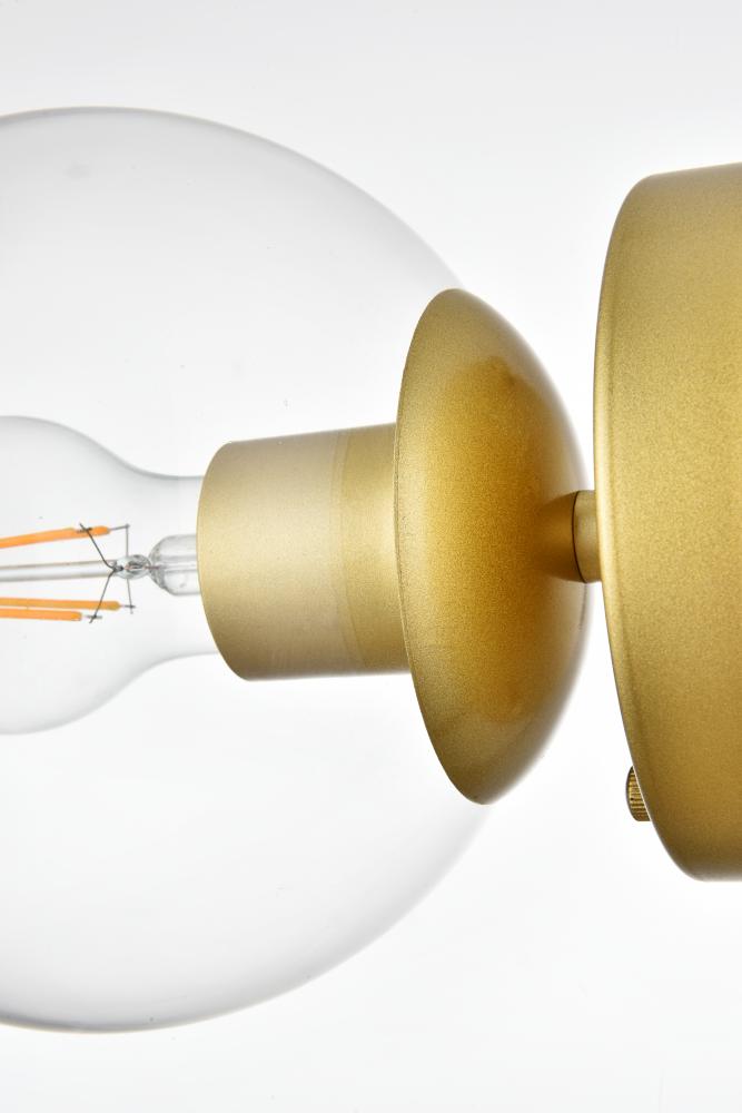 Turn up the brightness in your bathroom with this modern vanity light. This iron fixture features a streamlined silhouette and a smooth finish for a mid-century modern look. The circular backplate connects to one sleek arm design. The arm holds clear glass globe shades that accommodate medium-base bulb up to 40W, which are not included.
