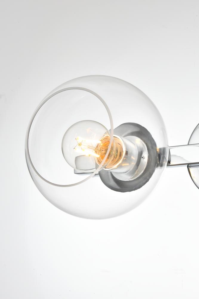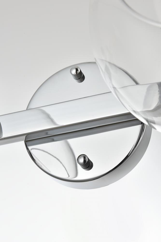 Turn up the brightness in your bathroom with this modern vanity light. This iron fixture features a streamlined silhouette and a smooth finish for a mid-century modern look. The circular backplate connects to one sleek arm design. The arm holds clear glass globe shades that accommodate medium-base bulb up to 40W, which are not included.