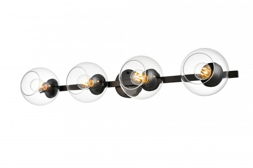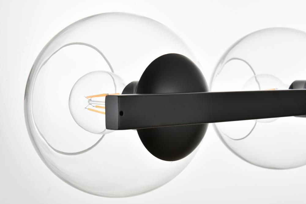 Turn up the brightness in your bathroom with this modern vanity light. This iron fixture features a streamlined silhouette and a smooth finish for a mid-century modern look. The circular backplate connects to one sleek arm design. The arm holds clear glass globe shades that accommodate medium-base bulb up to 40W, which are not included.