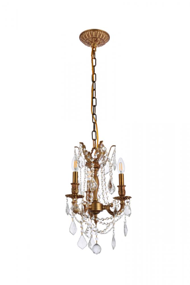 Rosalia 3 light French Gold Pendant Clear Royal Cut Crystal