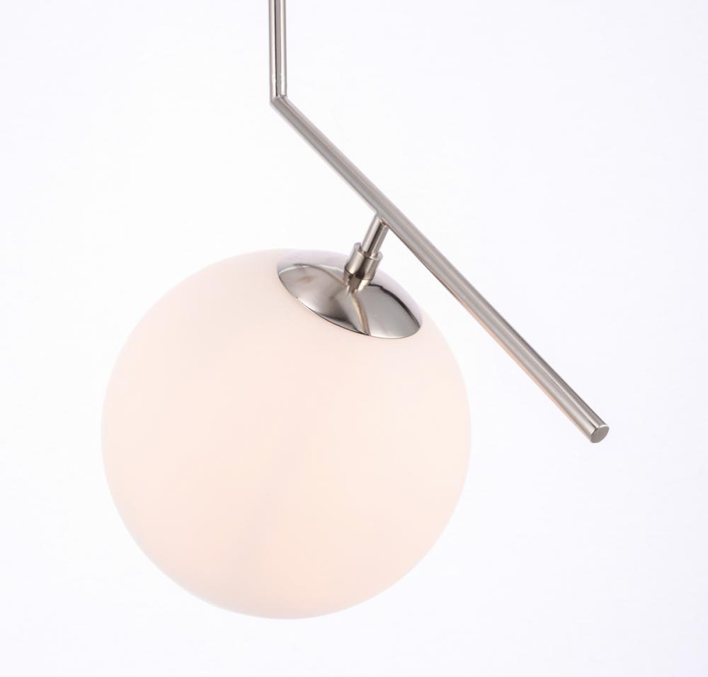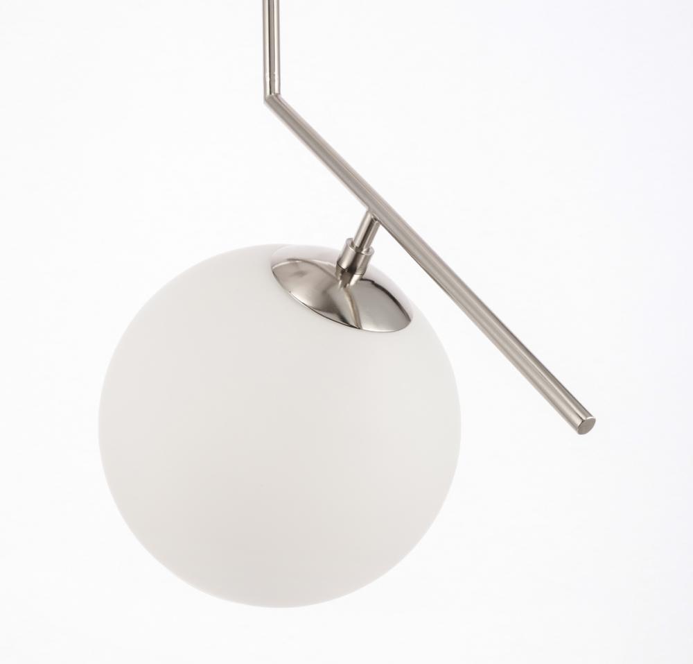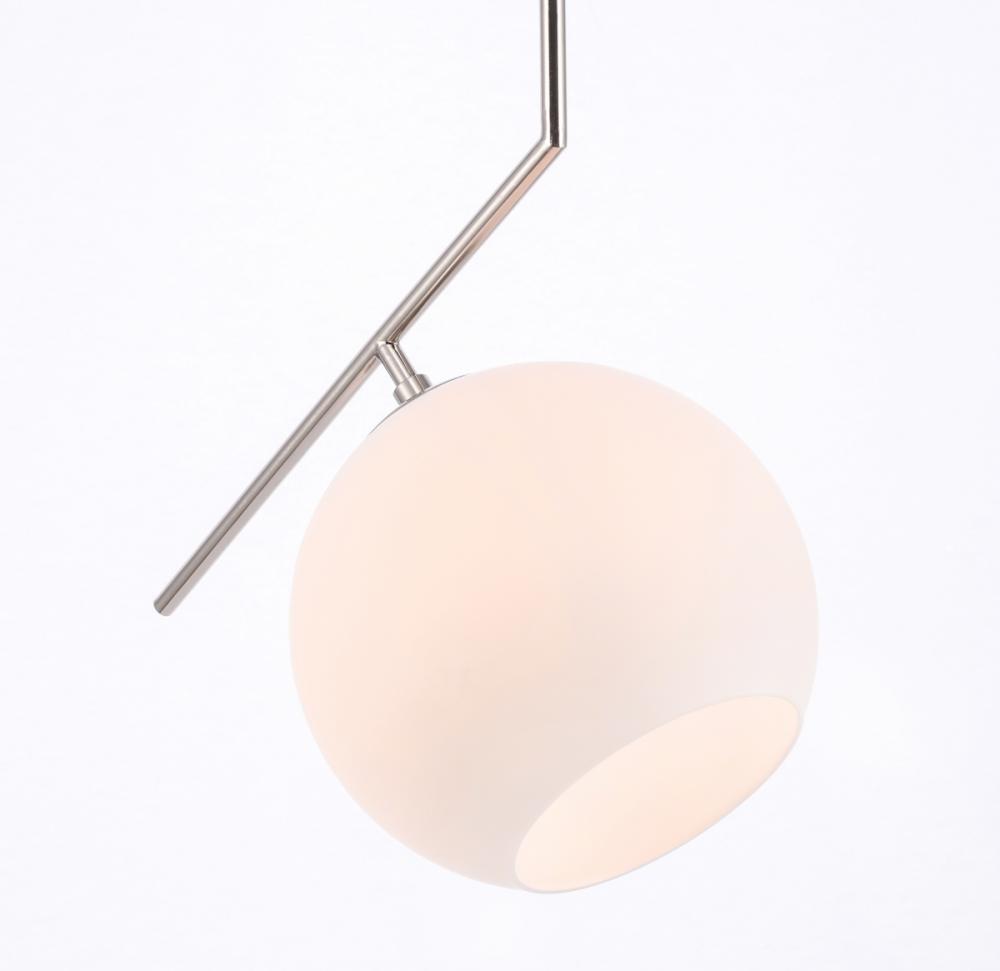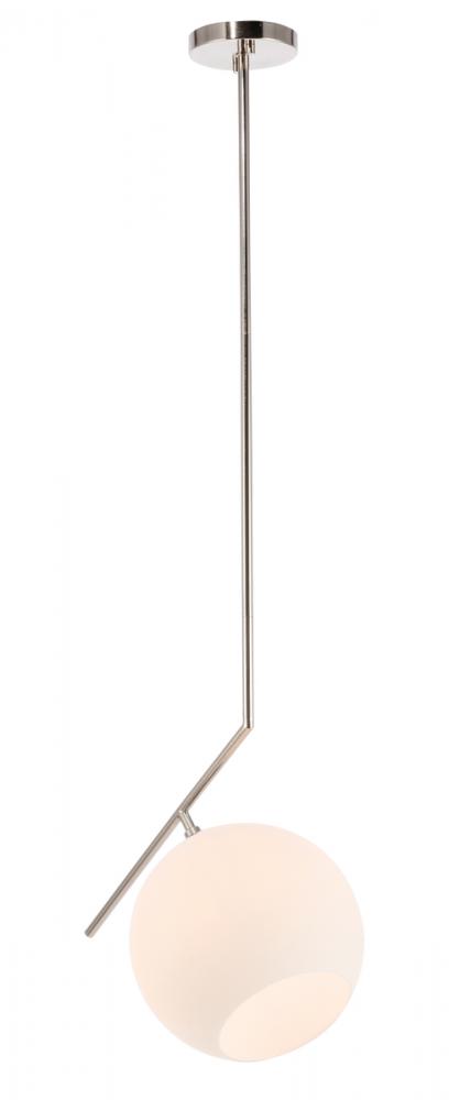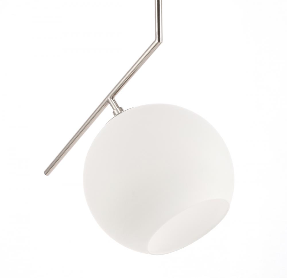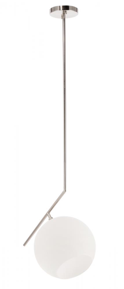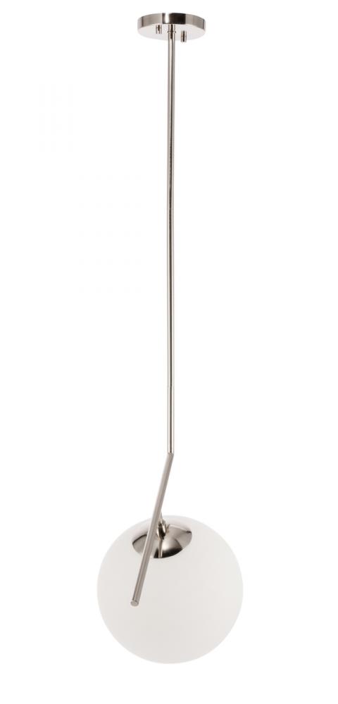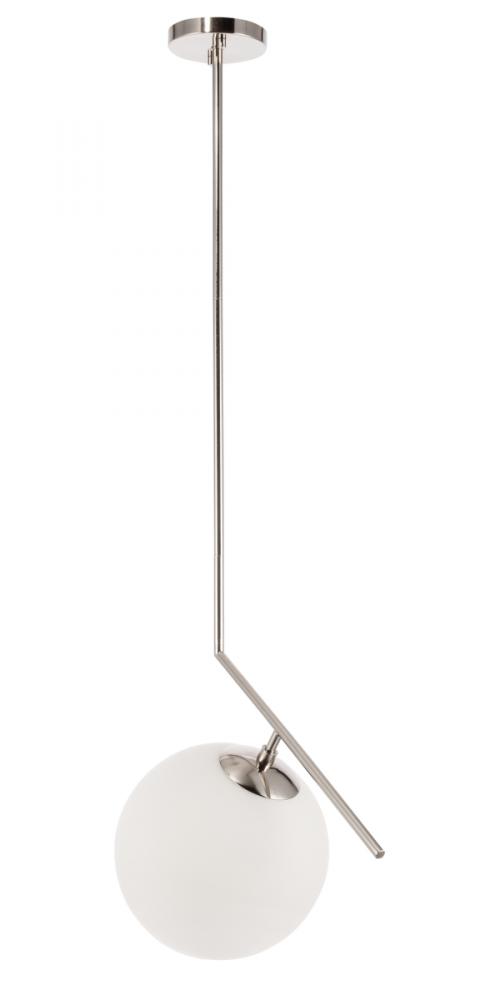 The Ryland Collection Pendant adds sophisticated elegance while still maintaining playful whimsy. The clean lines of the adjustable rod supports the light that is enclosed within the white frosted ball shade. Available in a brass, chrome, and two-toned black and brass finish, this fixture will add contemporary freshness to any room, your guests sure to notice your impeccable tastes in design (light bulbs not included).