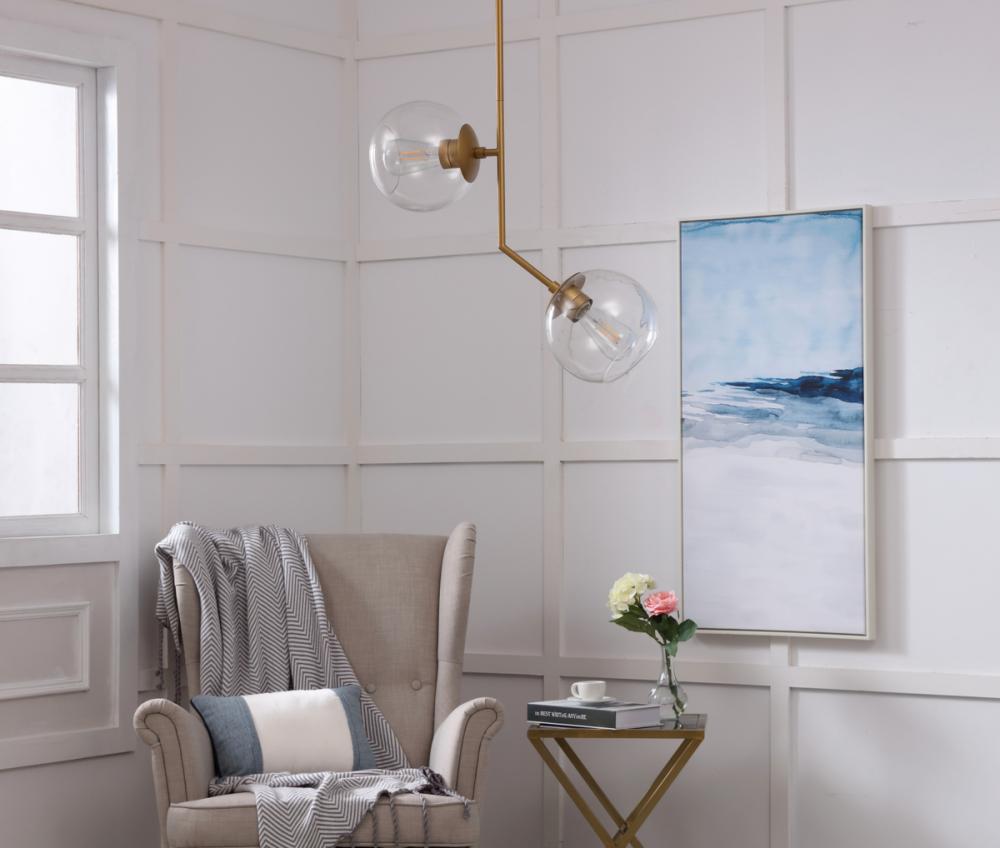 The Ryland Collection Pendant adds sophisticated elegance while still maintaining playful whimsy. The clean lines of the adjustable rod supports the lights that are enclosed within the clear ball shades. Available in a brass, chrome, and two-toned black and brass finish, this fixture will add contemporary freshness to any room, your guests sure to notice your impeccable tastes in design (light bulbs not included).