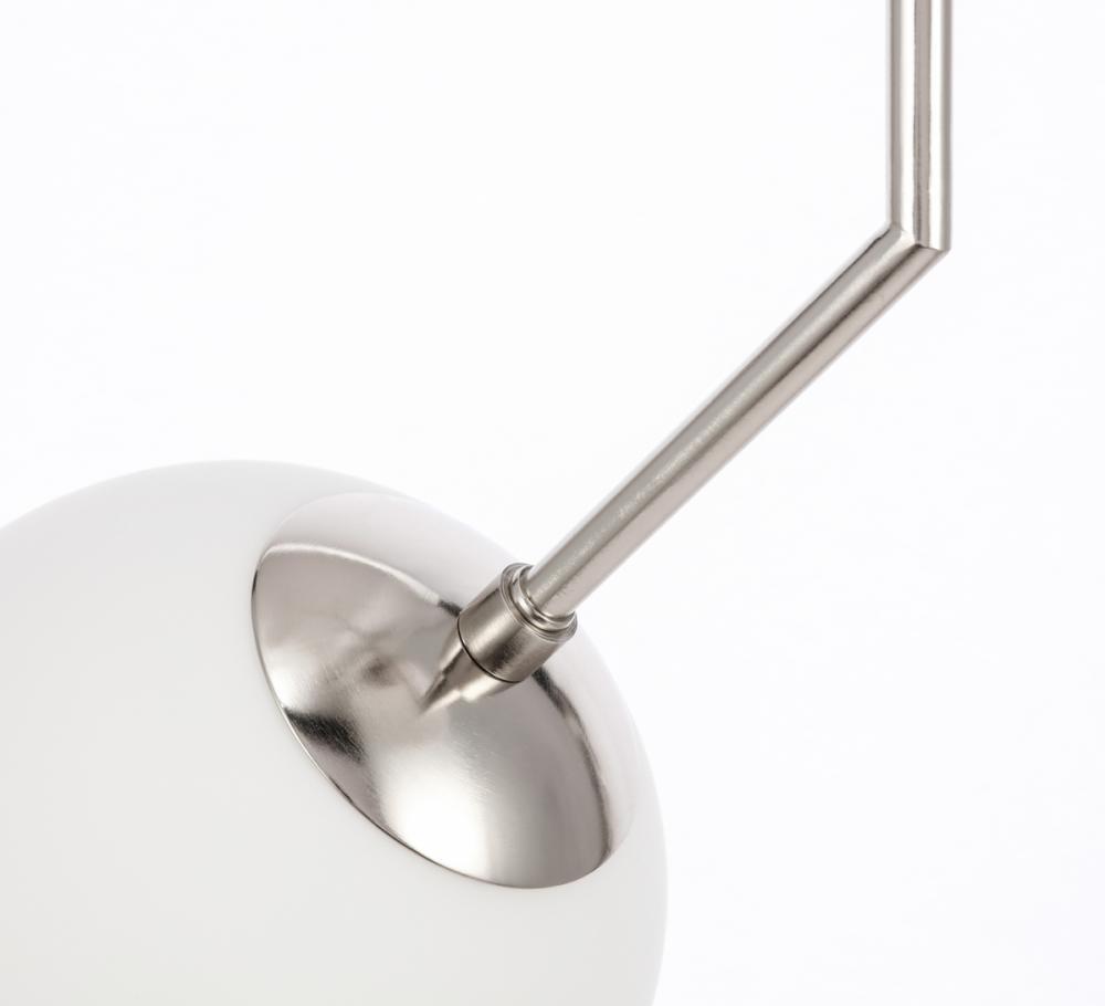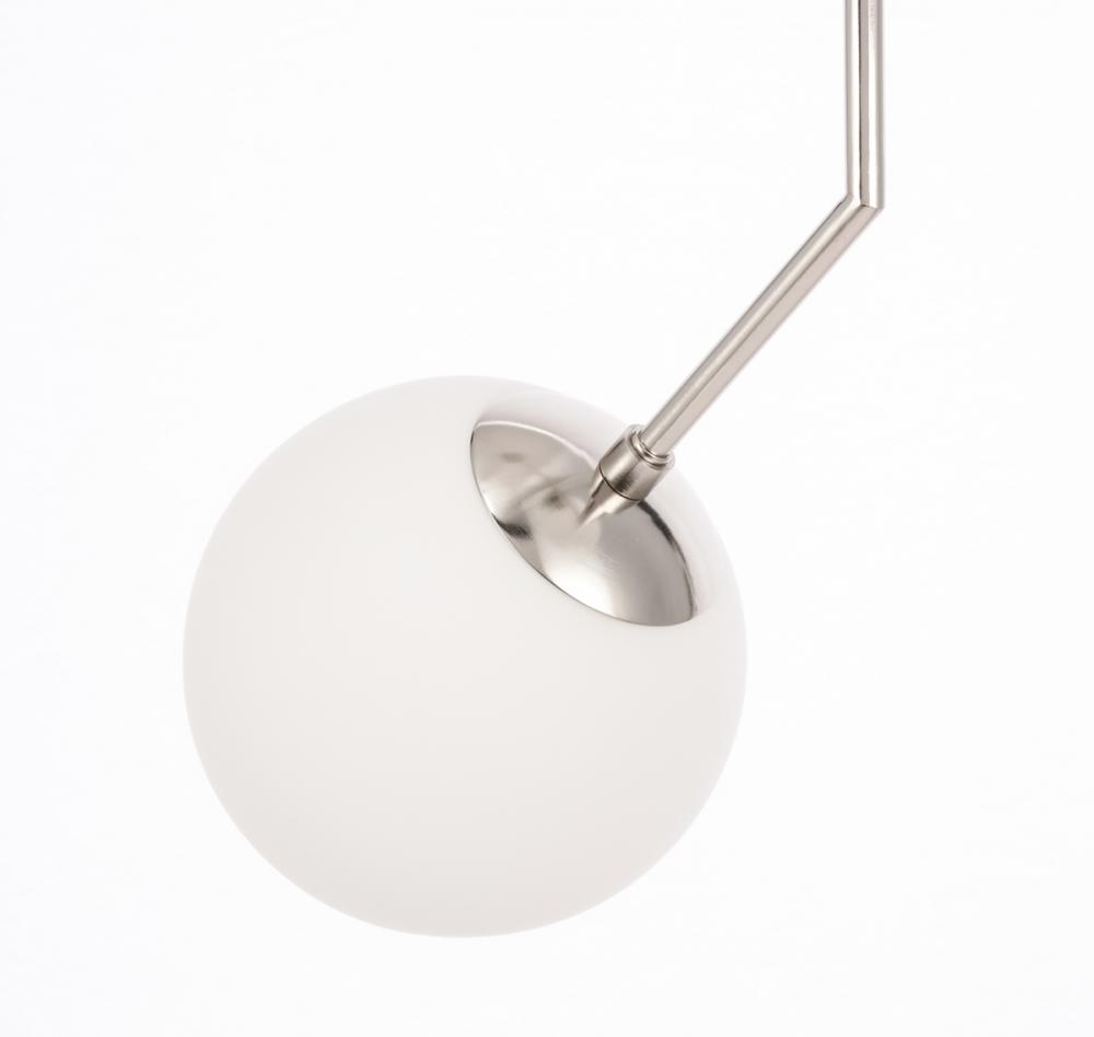 The Ryland Collection Pendant adds sophisticated elegance while still maintaining playful whimsy. The clean lines of the adjustable rod supports the lights that are enclosed within the white frosted ball shades. Available in a brass, chrome, and two-toned black and brass finish, this fixture will add contemporary freshness to any room, your guests sure to notice your impeccable tastes in design (light bulbs not included).