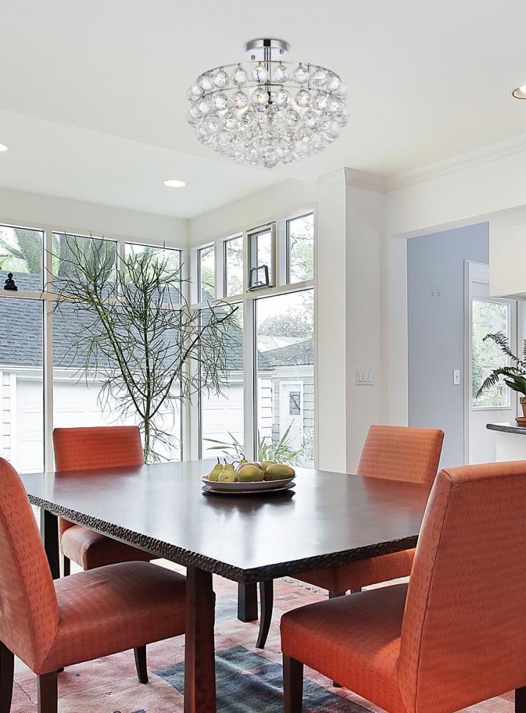 Install this flush mount in any room to give an elegant look. This stunning light features hand painted finish and clear brillant crystals which gives a classy look. Set a cozy atmosphere when you switch on this dazzling fixture and captivate your guests.