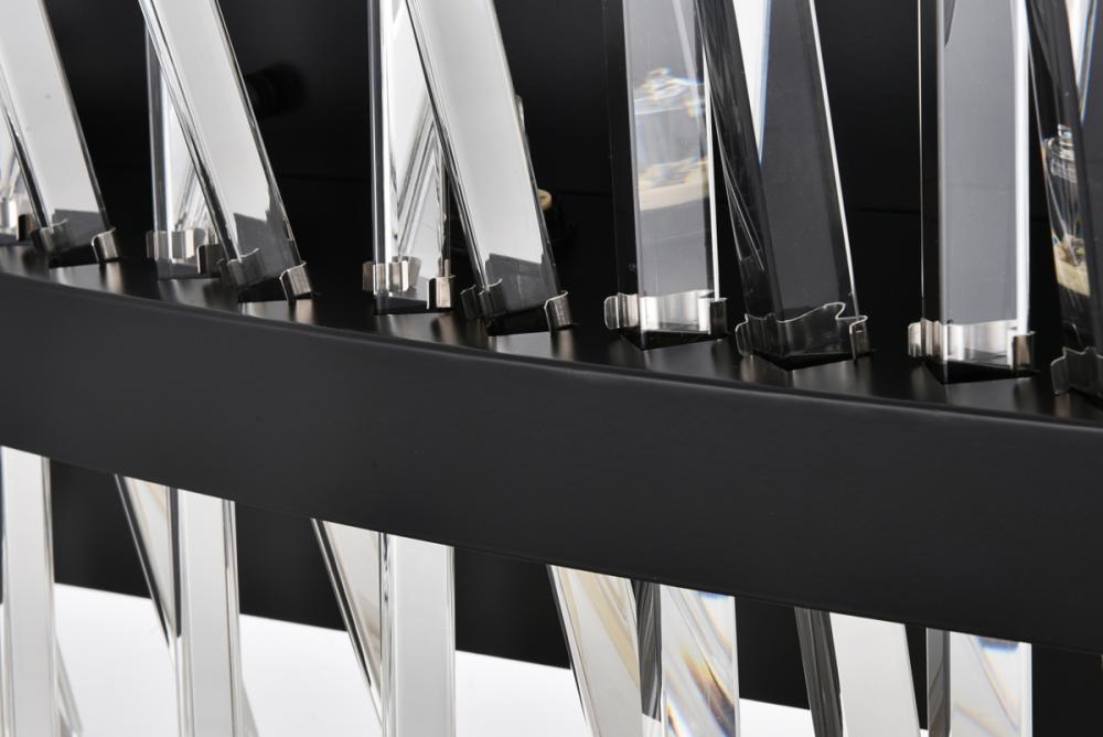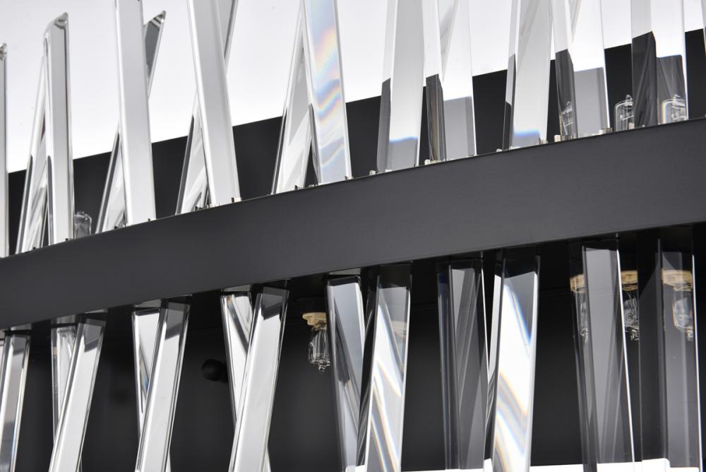 Modern crystal wall sconce features top and bottom tier crystal prisms staggered along a wrought iron frame. The thick metal frame wraps around top grade crystal prisms ensure it is built to last, definitely worth it. Mount this work of art and dim the lights for a bit of sophisticated lighting in your home. Get lost in a beautiful light and sleek design available in multiple finishes.