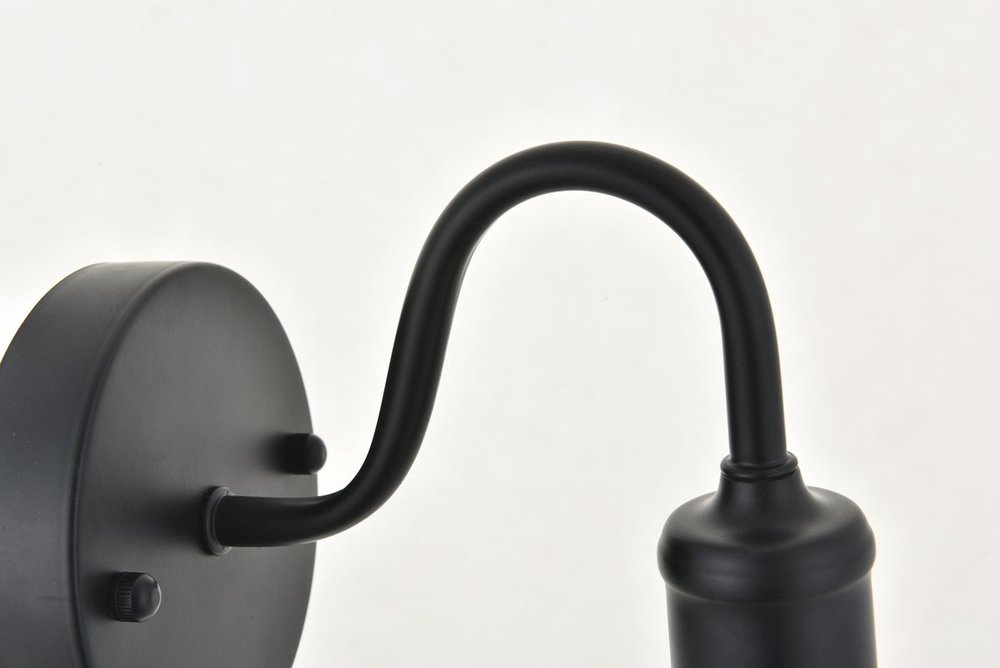 The classical elegance of the Serif collection wall lamp in a black finish brings graceful allure. Its tilde-like arm supports the light that emits a reassuring brilliance, and its gentle presence makes it a wonderful fixture to greet your guests at the entry way, illuminate your nightstands in the bedrooms, or shine in the powder room.