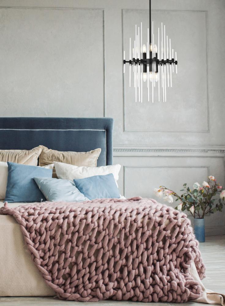 Enjoy the beautiful design of the Sienna collection pendants. The clear crystal rods seem as if they are following the direction of the lights bringing about illumination. is it the sun? is it a new day? No, it's simply just a fabulous light pendant! The perfect addition to your home, whether it's the living room, dining room, office or the entryway. Sloped ceiling adaptable with a durable swivel could be mounted on vaulted or angled ceilings.