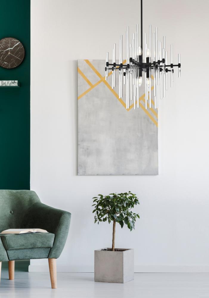 Enjoy the beautiful design of the Sienna collection pendants. The clear crystal rods seem as if they are following the direction of the lights bringing about illumination. is it the sun? is it a new day? No, it's simply just a fabulous light pendant! The perfect addition to your home, whether it's the living room, dining room, office or the entryway. Sloped ceiling adaptable with a durable swivel could be mounted on vaulted or angled ceilings.
