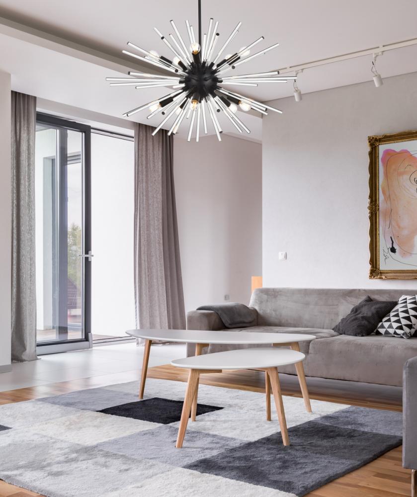 Minimum hanging height of 28 inches and maximum hanging height of 60.8 inches