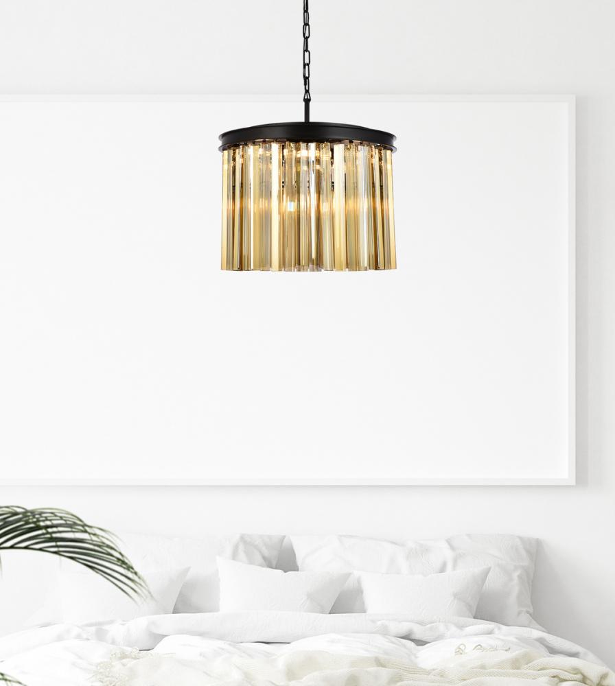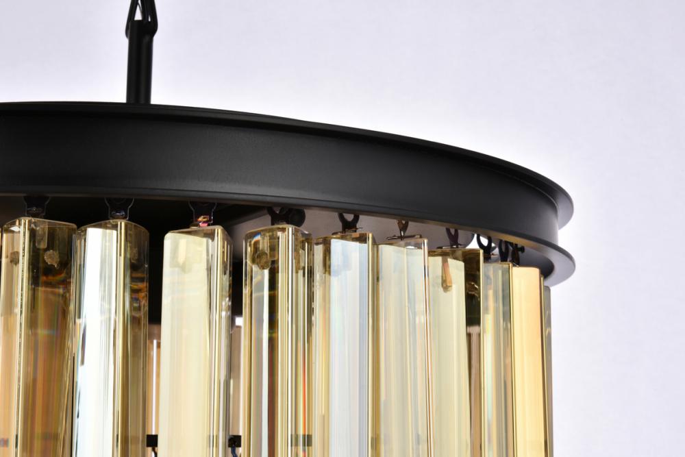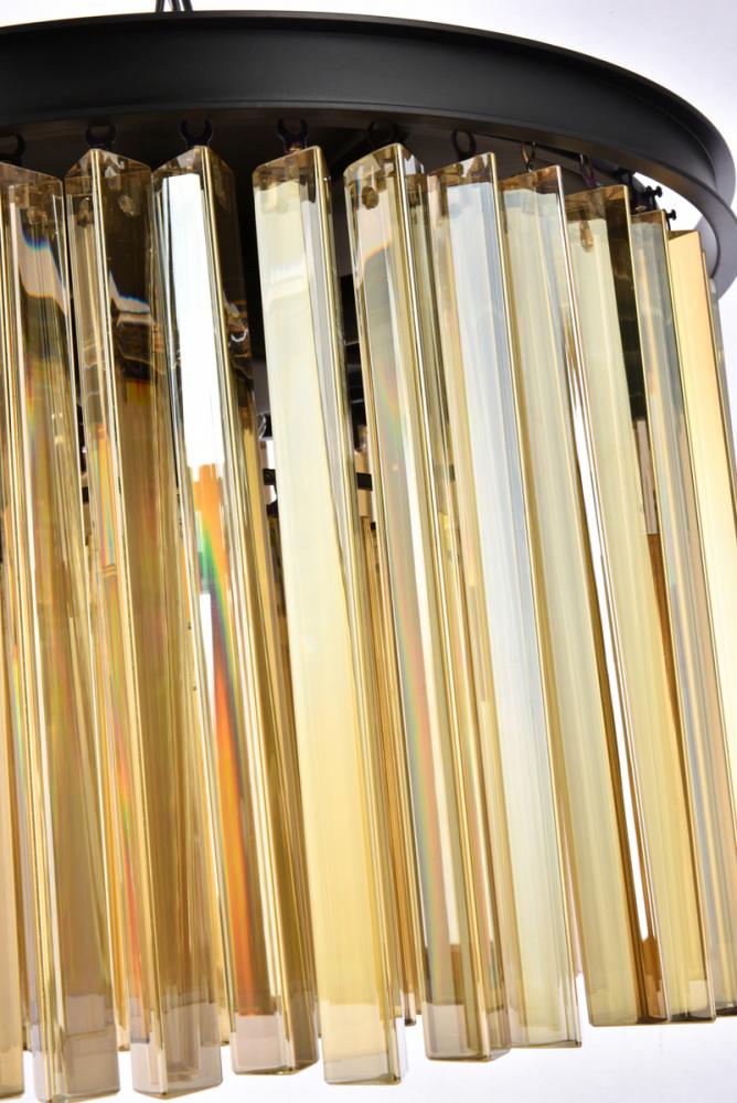 Bring the splendor of the ballroom into your home with a sparkling Sydney fixture. Stunning in foyers, dining rooms, or stairwells, the Sydney collection brings to mind the glamour of the Roaring Twenties. Features glimmering tiers of royal-cut clear, golden-teak, or Silver-shade crystals. In Matte Black or polished-nickel finishes, this sturdy, yet delicate, pendant lamp will be the perfect centerpiece for any décor.