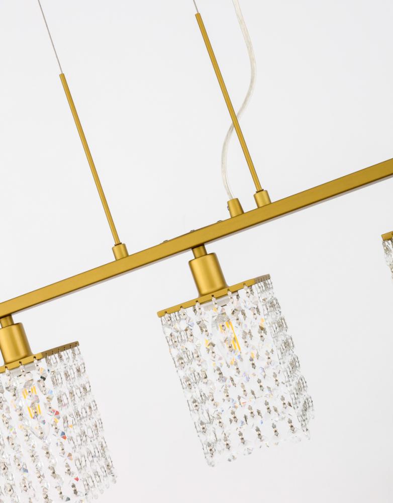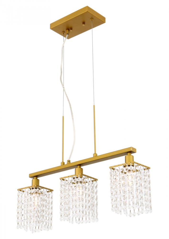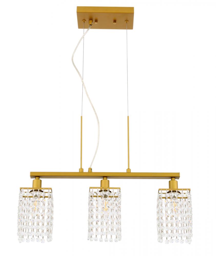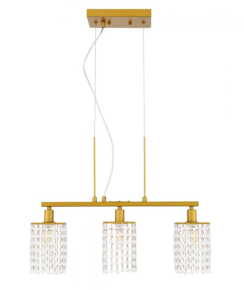 The Taylor collection pendant lamp in a brass finish is evocative of a glamourous era of sparkling jewels, shimmering champagne, and brilliant laughter and conversation that surely danced through the halls. The sparkling crystals are draped over the shimmering lights, whose brilliant illuminations dance its way throughout your rooms. Whether you allow for this 3-light pendant to charismatically greet your beloved guests in the foyer or living room--you can't go wrong.