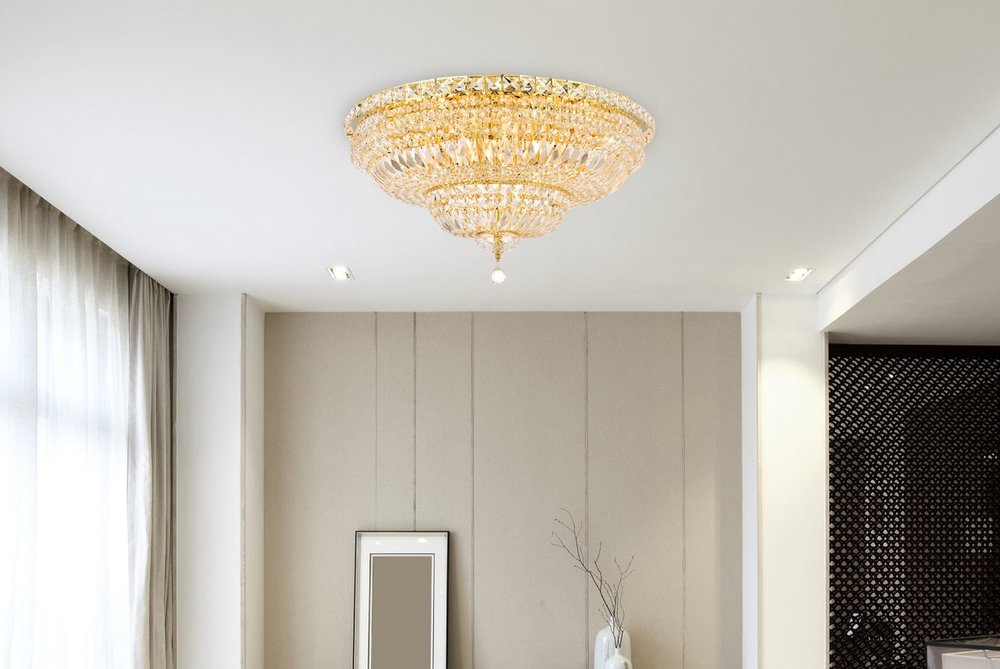Tranquil 18 light Gold Flush Mount Clear Royal Cut Crystal