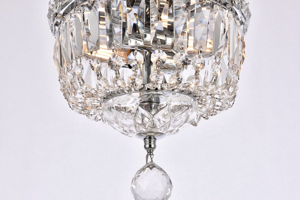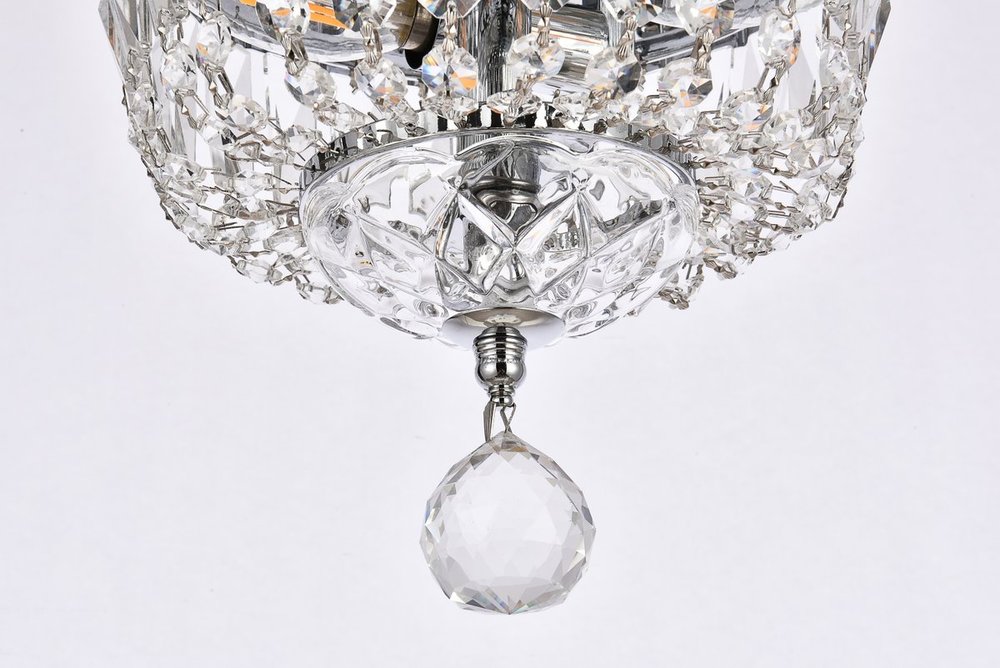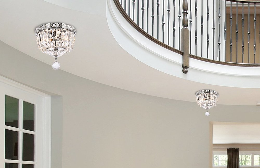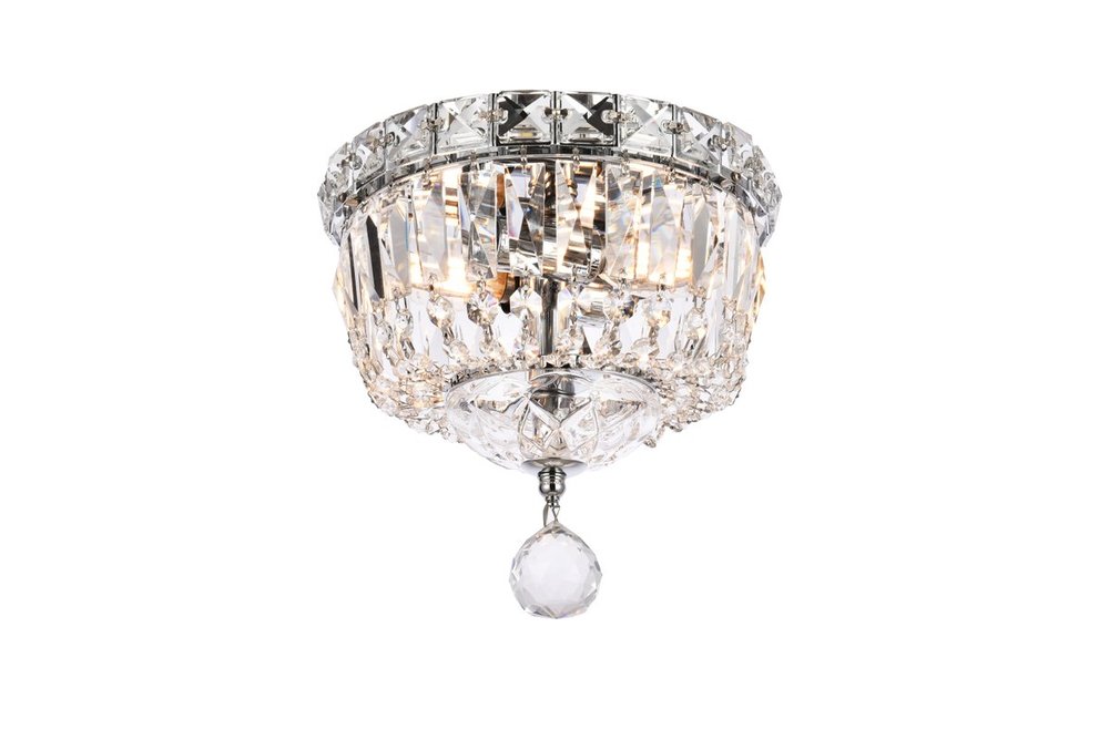 The Tranquil collection of flush-mount fixtures is everything you could imagine in the most decadent of lighting for your home. Captivating and serene, the radiance of this masterpiece will make you feel like a fireball of lustrous sparkle enraptures you. Chrome-finished bands of exquisite emerald-cut and baguette crystals are finished off with a mesmerizing spherical gem. These hypnotizing fixtures will add a touch of panache to your kitchen, dining room, foyer, or bedroom.