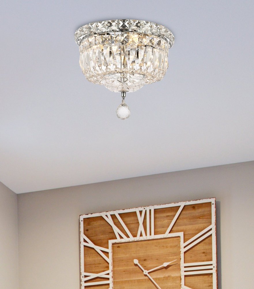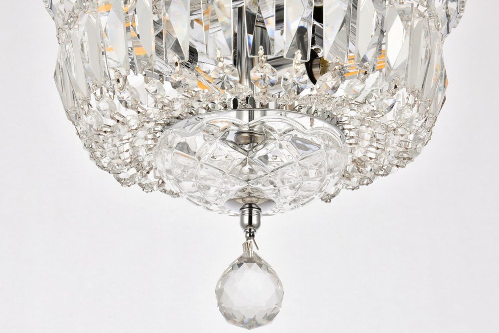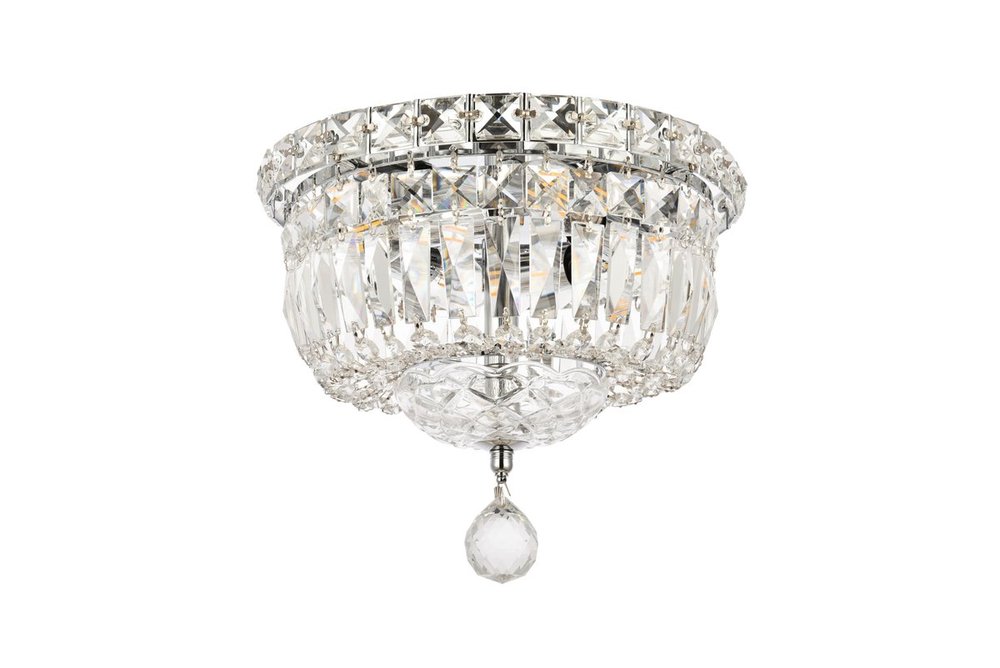 The Tranquil collection of flush-mount fixtures is everything you could imagine in the most decadent of lighting for your home. Captivating and serene, the radiance of this masterpiece will make you feel like a fireball of lustrous sparkle enraptures you. Chrome-finished bands of exquisite emerald-cut and baguette crystals are finished off with a mesmerizing spherical gem. These hypnotizing fixtures will add a touch of panache to your kitchen, dining room, foyer, or bedroom.