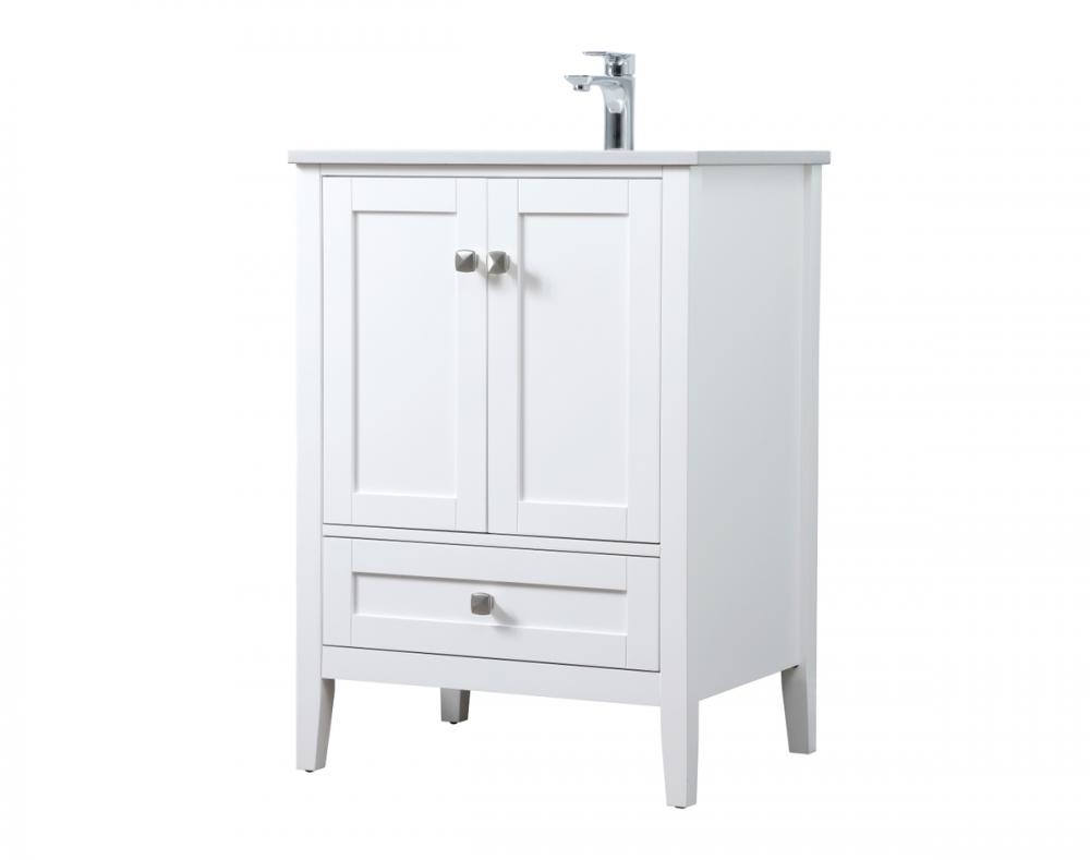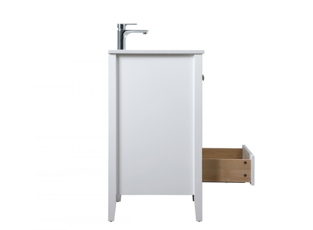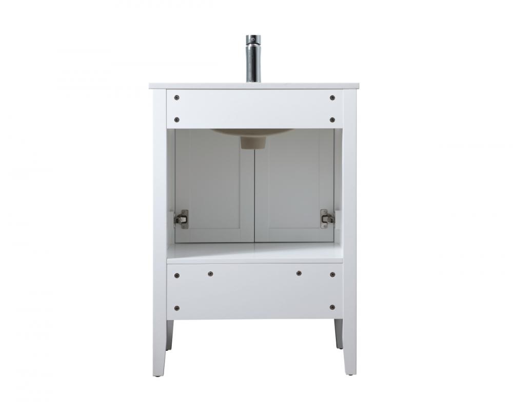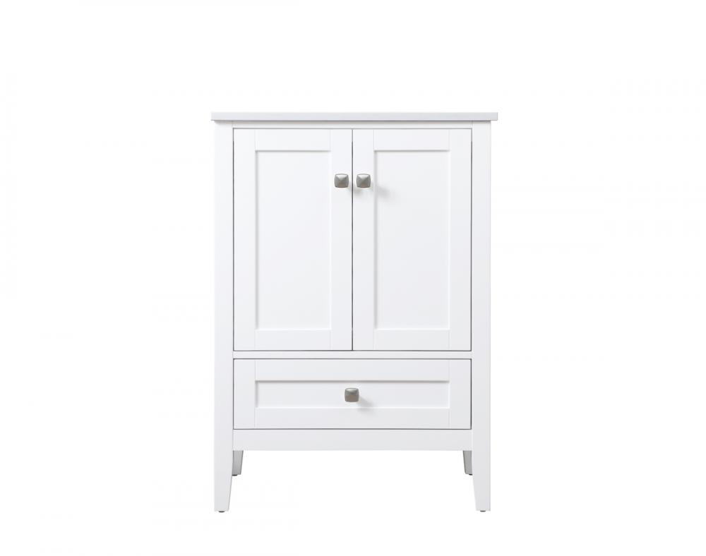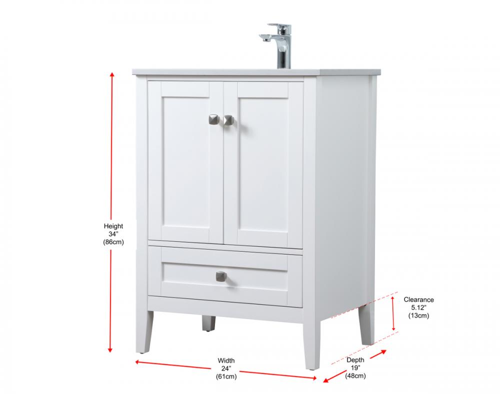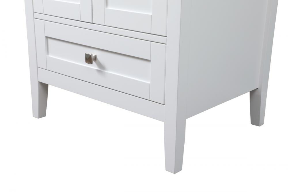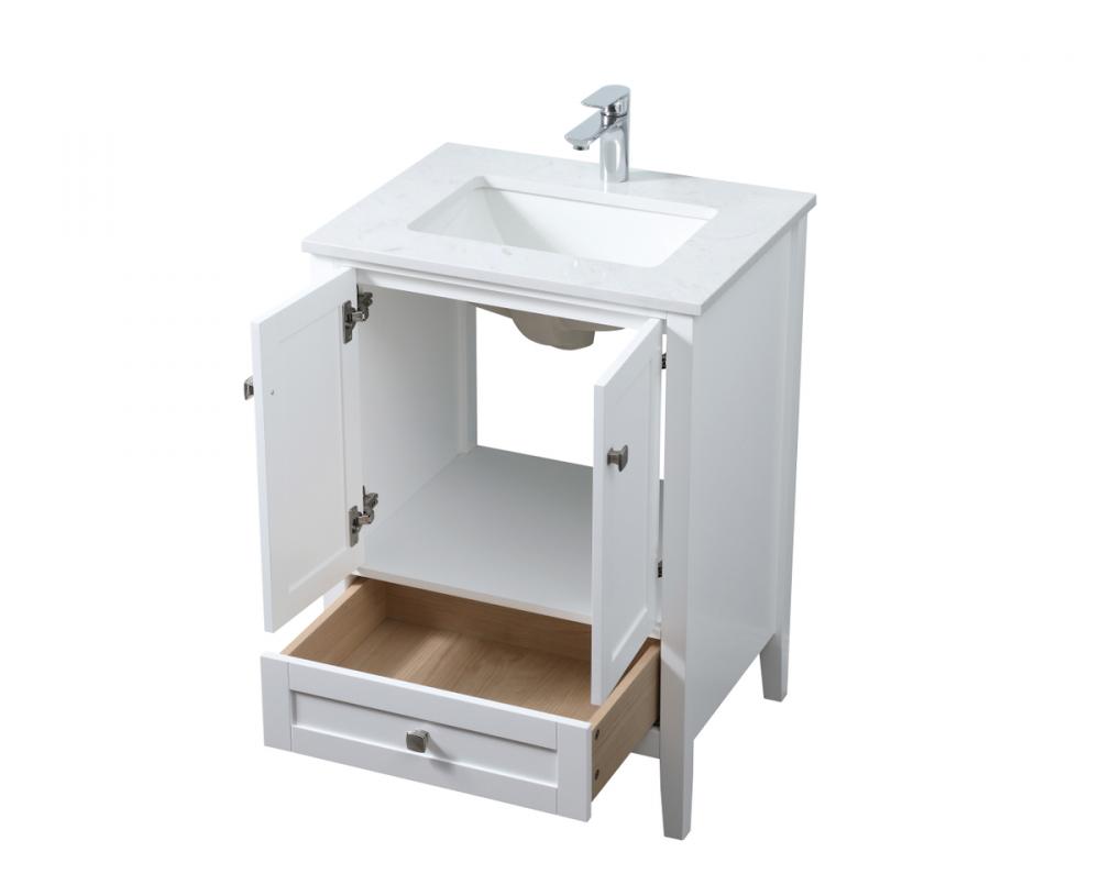 Elevate your bathroom with our precision-crafted 24-inch vanity, showcasing a chic straight edge cut and an engineered marble top that adds a dash of modern elegance to your space. The design features a spacious cabinet with soft-close hinges, paired with a functional soft-close bottom drawer, providing ample and stylish storage. Complete with a sophisticated undermount porcelain sink, the vanity seamlessly merges style and practicality for an elevated bathroom experience. Adorned with three brushed nickel knobs, our vanity boasts stylish hardware, adding a personalized touch and ensuring convenient access to storage. Additionally, with a single pre-drilled hole for seamless faucet installation, our versatile vanity allows you to effortlessly personalize your bathroom, adding a final touch of elegance to your unique space. Redefine your bathroom experience with this stylish and functional addition.