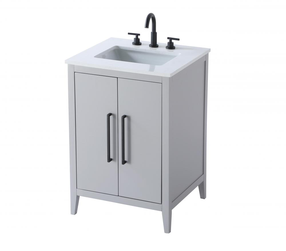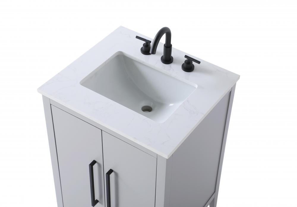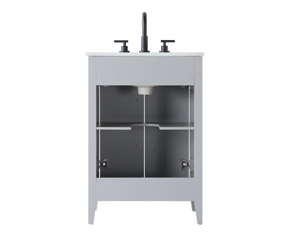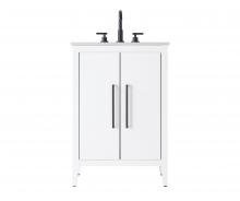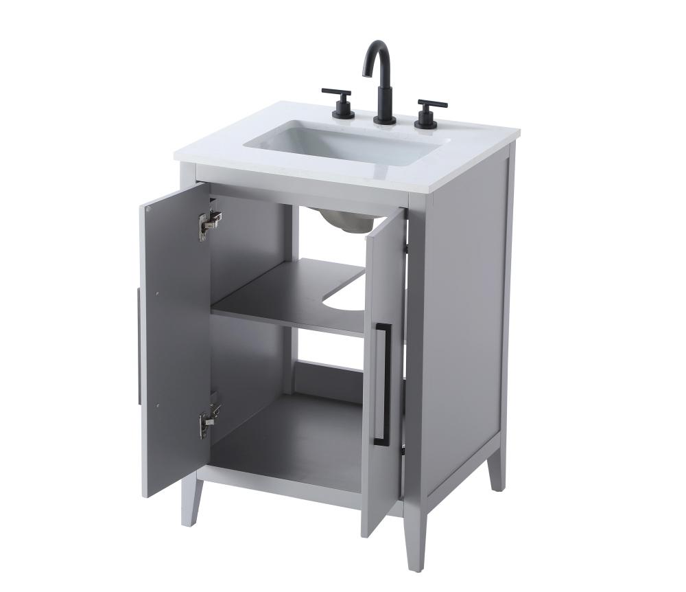 Bring both elegance and practicality to your bathroom with this transitional vanity, available in a selection of rich finishes that highlight the beauty of faux wood grain in shades of mocha, chestnut, and honey, along with classic white and modern grey. The flat door panels and sleek black metal pulls create a minimalist yet refined aesthetic, while the soft-closing drawers and tapered legs with levelers provide smooth, functional operation. Topped with a luxurious white engineered marble countertop and featuring a porcelain sink, this vanity combines timeless style with modern efficiency. Thoughtfully designed with U-shaped cutout for plumbing, it offers ample storage and easy installation, making it the perfect centerpiece for any bathroom.