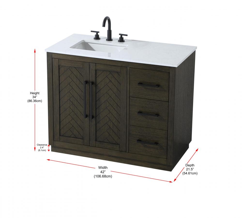 Vanity Cabinet 2Dr 3Dw W42"xD21.5"xH34" Chocolate Oak