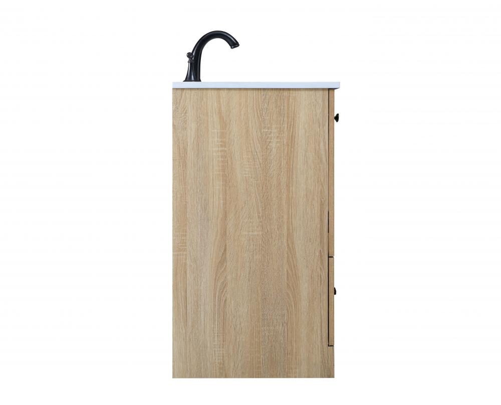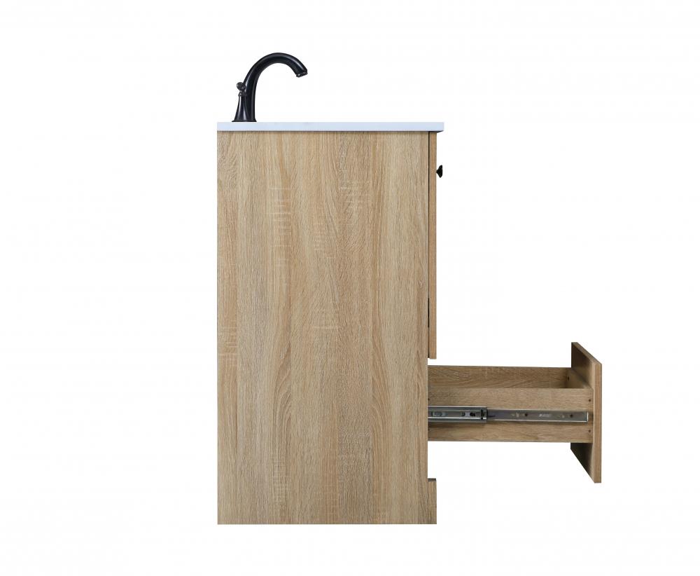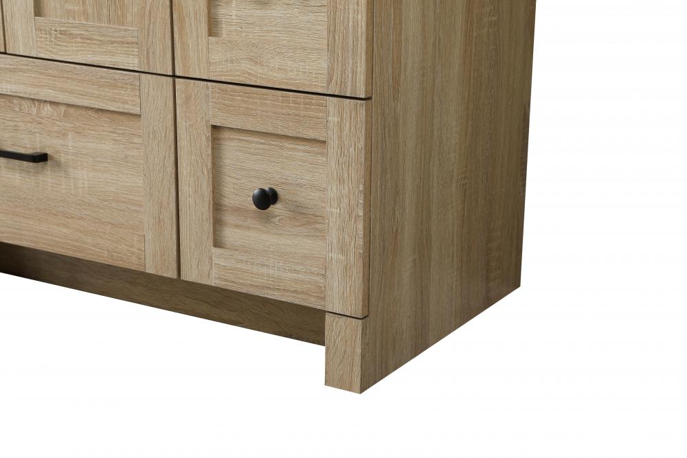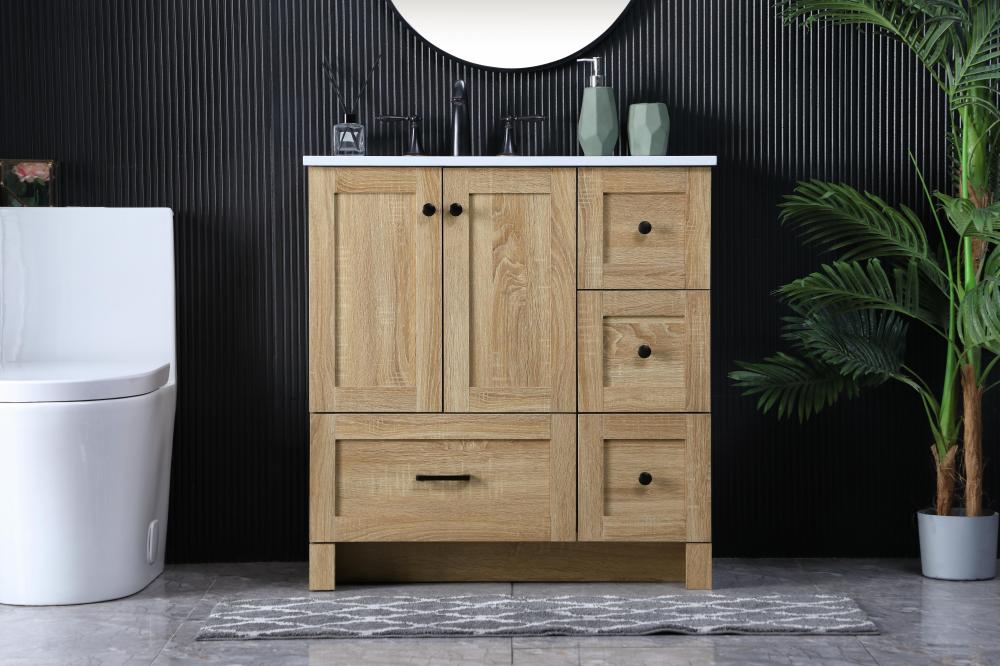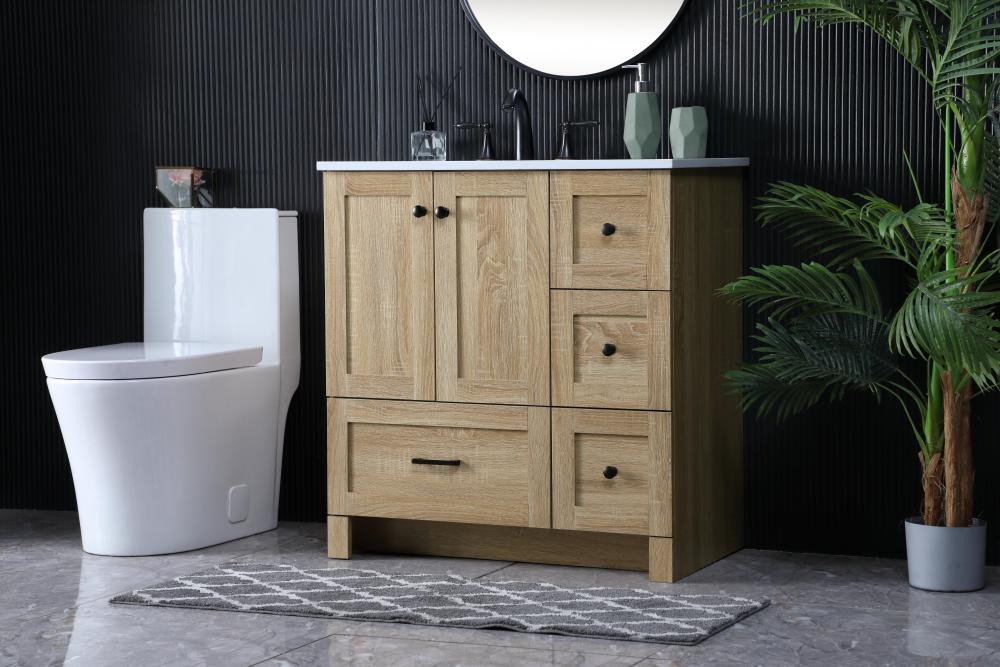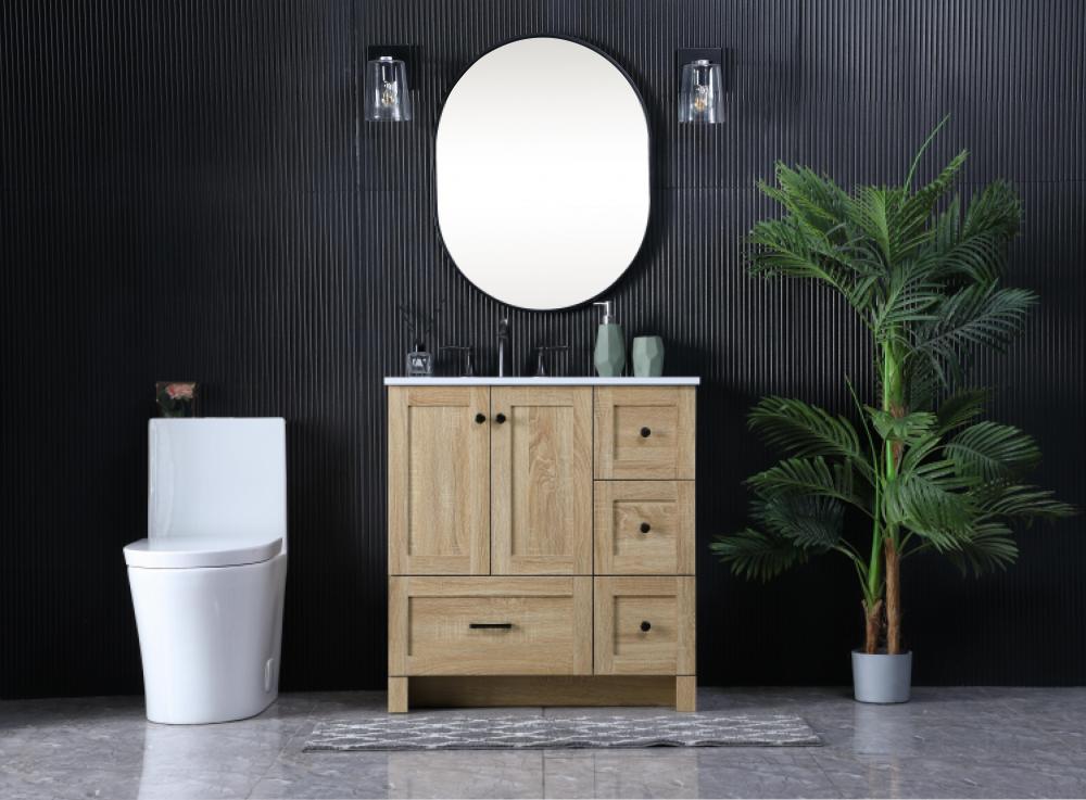 Revel in the beauty of a vanity that mimics the charm of real wood without the maintenance, boasting a faux wood look that adds a touch of natural warmth and rustic sophistication to your bathroom.