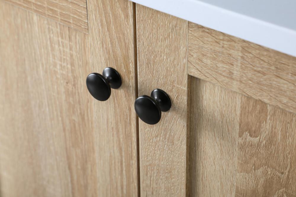 Indulge in the details with high-quality knobs and pulls adorning the drawers and doors, adding a touch of sophistication and functionality to your vanity.