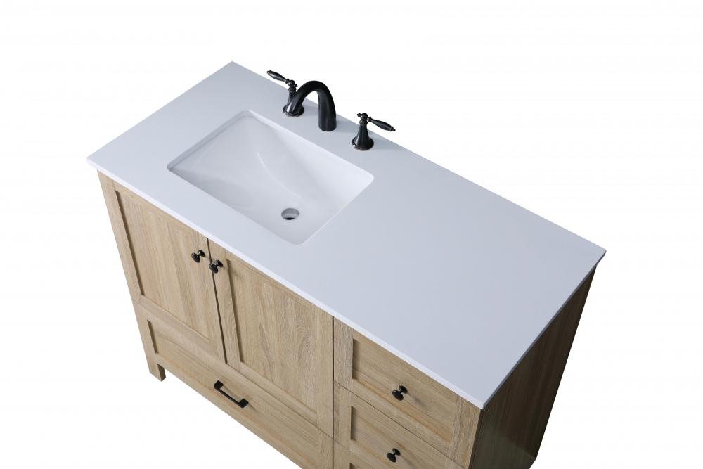 Revel in the beauty of a vanity that mimics the charm of real wood without the maintenance, boasting a faux wood look that adds a touch of natural warmth and rustic sophistication to your bathroom.