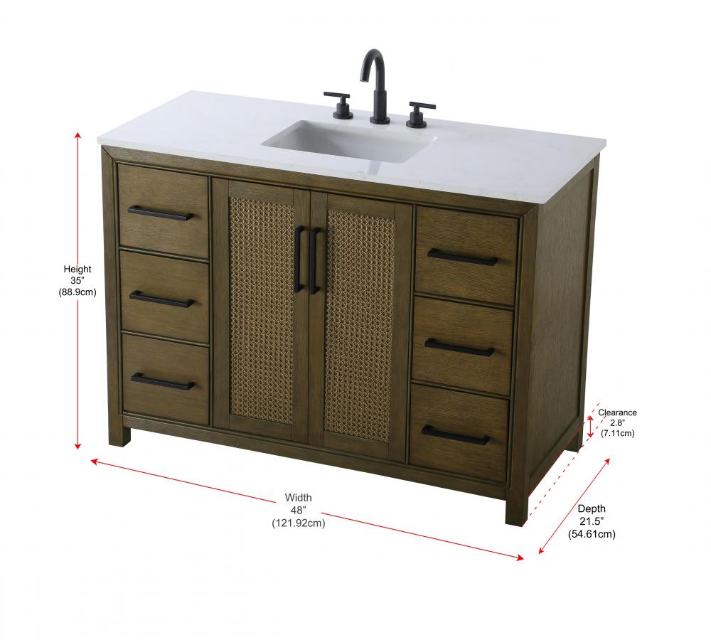 Perfect for those with an eye for detail and quality, this transitional vanity blends modern design with timeless elegance. Available in five stunning finishes, from Crisp White to Linen Oak, the wood grain visuals of the oak options bring warmth and character to any bathroom. The caning design on the Shaker-style door panels adds texture and a touch of refinement, while the soft-closing doors and drawers ensure smooth, quiet functionality. Topped with a white engineered marble countertop, the vanity offers both luxury and practicality, complete with pre-drilled faucet holes for customization. A concealed overflow and U-shaped shelf for plumbing make installation effortless, and the slender black metal pulls provide a sleek contrast.