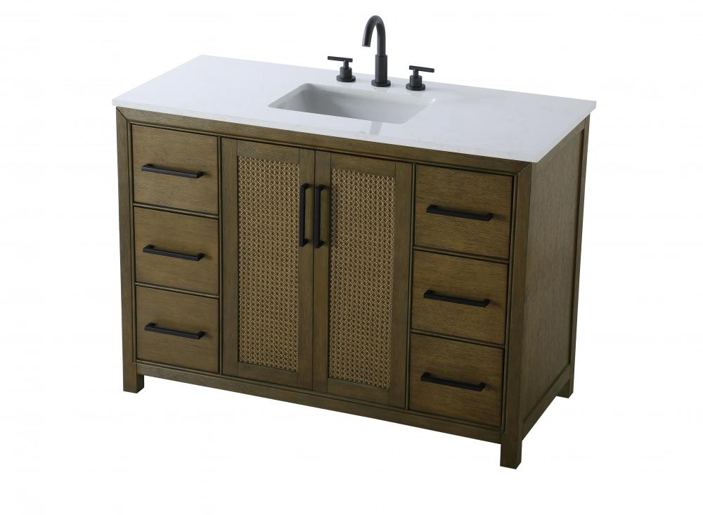 The shaker-style door panels feature a subtle caning design, adding texture and visual interest while maintaining a clean and timeless aesthetic.