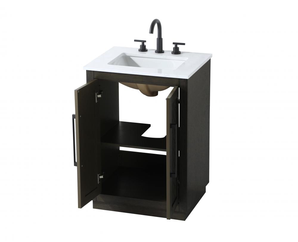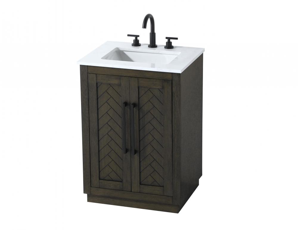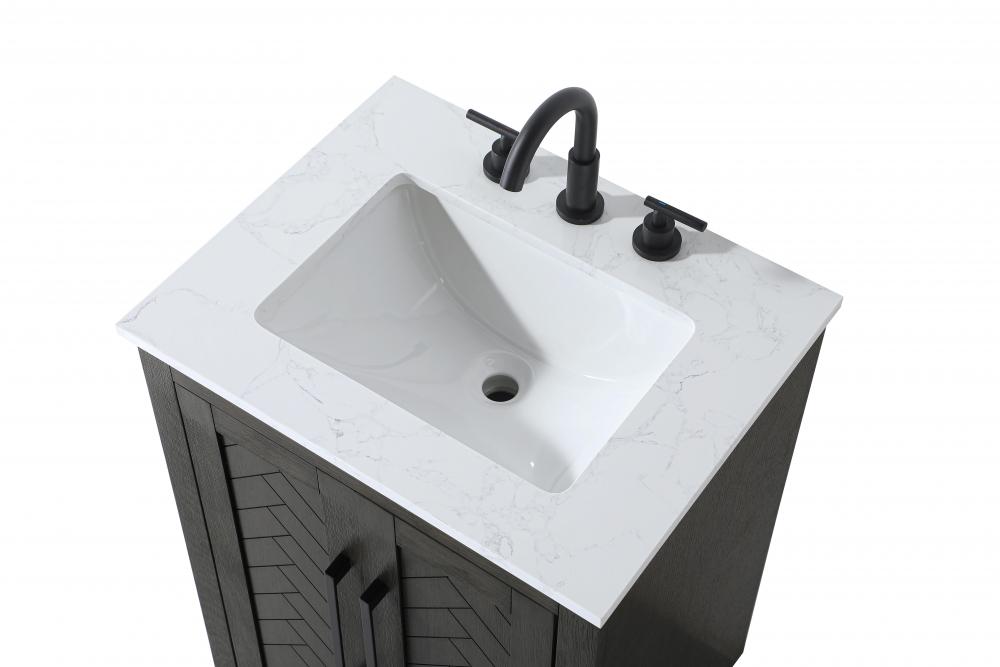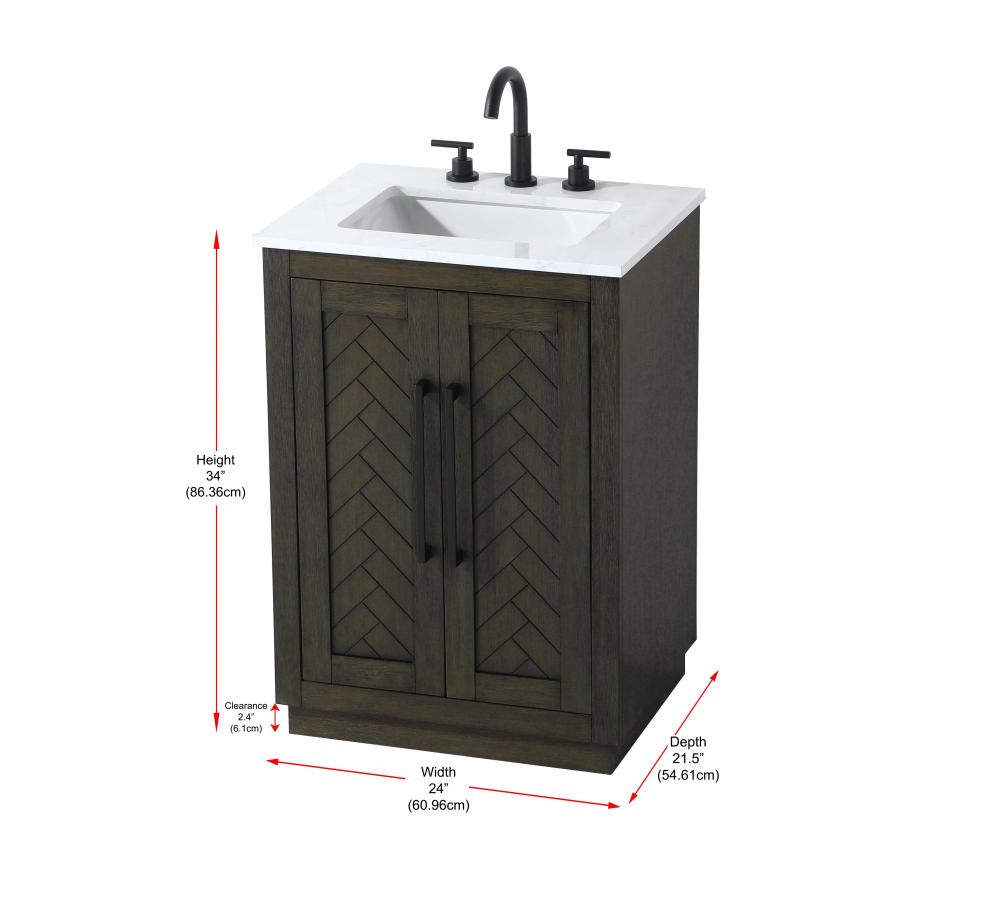This transitional bathroom vanity offers the perfect blend of timeless style and modern functionality. Available in five refined finishes—crisp white, sleek grey, chocolate oak, honey oak, and linen oak—it complements a range of decor styles, from classic to contemporary. The stunning herringbone design on the Shaker-style door panels adds texture and craftsmanship to the piece. Topped with a white engineered marble countertop featuring subtle veining, it provides both beauty and durability. The long black metal pulls on the soft-closing doors add sleek, modern detailing. Practical features include a concealed overflow, a back panel cutout for easy plumbing installation, and a U-shaped cutout shelf to fit plumbing while maximizing storage space. with a toe kick all around the base, this vanity is thoughtfully designed to blend form and function in any bathroom setting.
