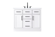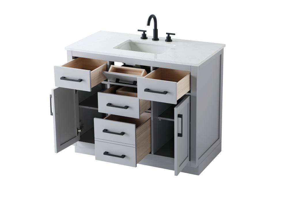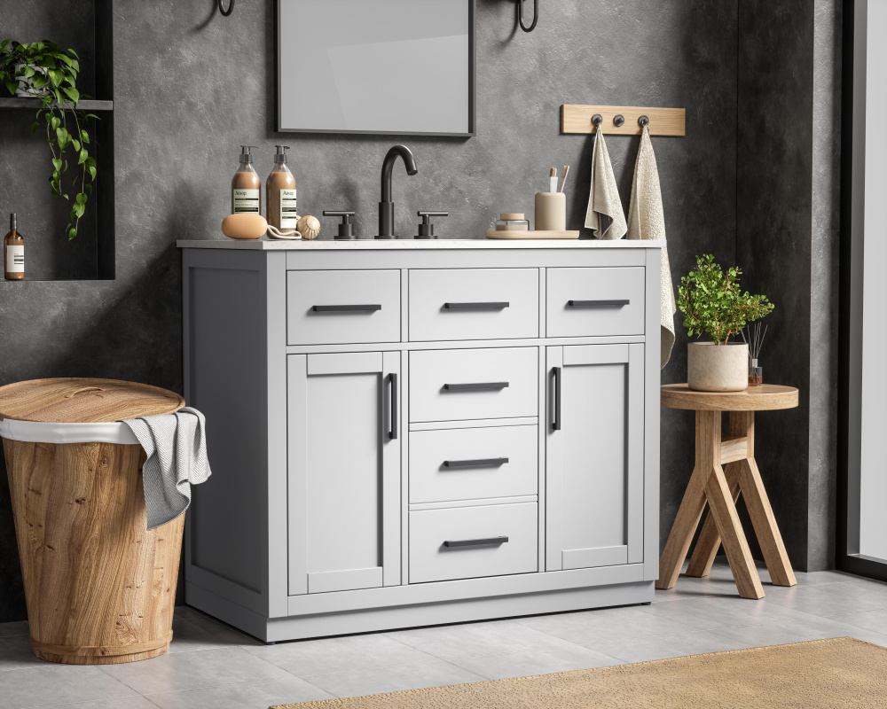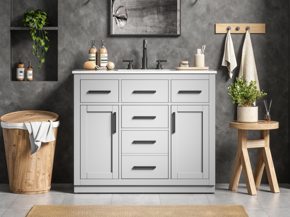 Spacious bottom deep drawers provide extra room for storing larger items like towels or cleaning supplies.