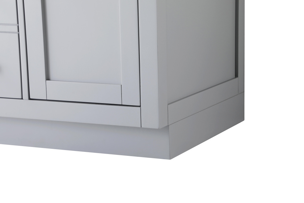 Toe kick design offers a streamlined look while providing easy cleaning access beneath the vanity.