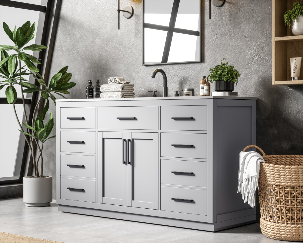 Spacious bottom deep drawers provide extra room for storing larger items like towels or cleaning supplies.