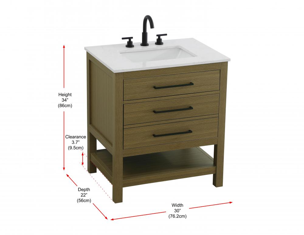 Vanity Cabinet 2DW 30"W x 22"D x 34"H Chestnut Brown