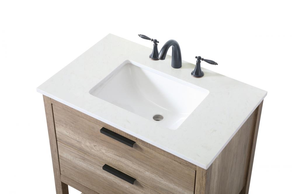 Elevate your bathroom effortlessly with our stylish vanity. Featuring an engineered marble top and chic straight edge cut, it brings a touch of modern elegance. The two soft-close drawers are adorned with sleek pulls, which offer both convenient storage and a contemporary aesthetic. Completing the ensemble, an undermount porcelain sink adds timeless charm. The vanity's open shelf at the bottom provides extra storage and a space to showcase decor. As a freestanding unit, this hassle-free solution requires no assembly. Customize your space effortlessly with this sophisticated option for instant bathroom elegance.