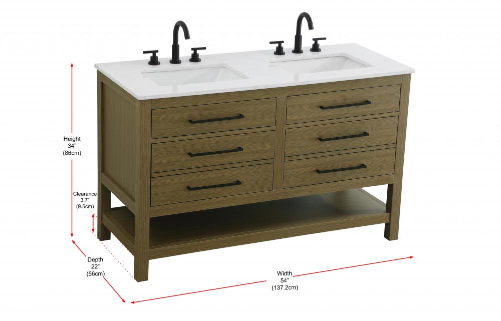Vanity Cabinet 4DW 54"W x 22"D x 34"H Chestnut Brown