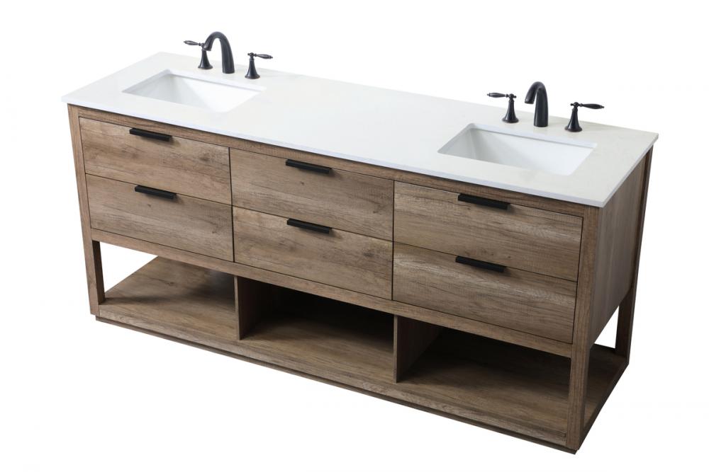 Elevate your bathroom effortlessly with our stylish vanity. Featuring an engineered marble top, and chic straight edge cut, it brings a one-of-a-kind touch of modern elegance. The four functional soft-close drawers, adorned with sleek pulls, offer both convenient storage and a contemporary aesthetic, while two faux top drawers add an extra design flair. Completing the ensemble, two undermount porcelain sinks add timeless charm. The vanity's open shelf at the bottom provides extra storage and a space to showcase decor. As a freestanding unit, this hassle-free solution requires no assembly. Customize your space effortlessly with this sophisticated option for instant bathroom elegance.