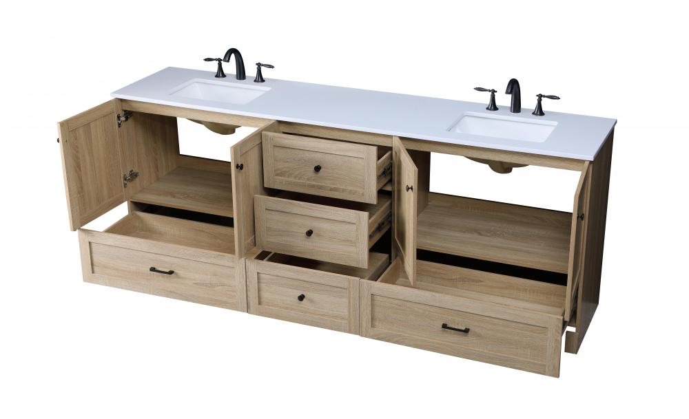 Indulge in the details with high-quality knobs and pulls adorning the drawers and doors, adding a touch of sophistication and functionality to your vanity.