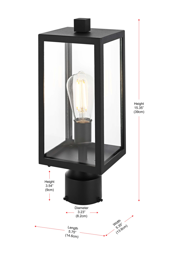 This post light combines modern geometry with functional outdoor lighting, featuring a rectangular metal frame and clear glass panels that create a sleek, defined appearance. The black-finished iron and aluminum construction ensures durability, while the fully enclosed bottom design helps protect the bulb from dust and outdoor debris. The clear glass panels maximize illumination, making this fixture both practical and visually striking. Designed to fit most standard 3.23-inch post light poles (pole not included), this fixture is dimmable when paired with a compatible dimmer, offering adjustable brightness for different outdoor settings. ETL Wet Rated for outdoor durability, this structured and modern post light is a strong addition to driveways, pathways, and garden landscapes. Built with marine-grade, corrosion-resistant aluminum, this sconce withstands coastal conditions for long-lasting durability.